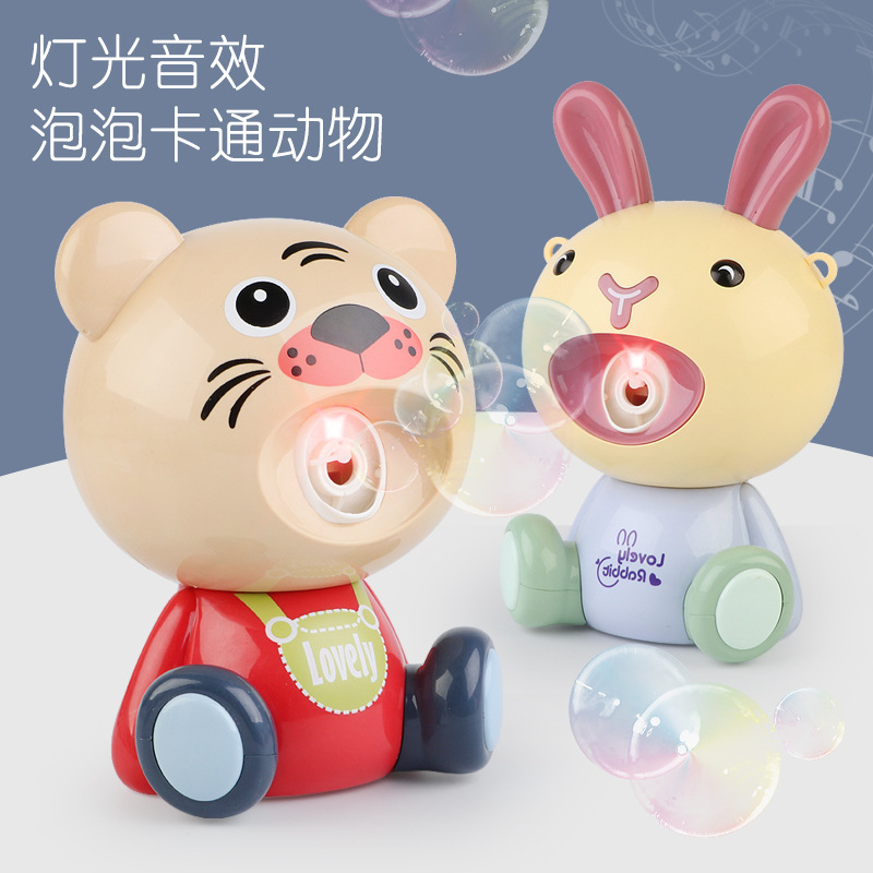 夏天公园热卖玩具 全自动吹泡泡小熊 兔子 老虎泡泡机 发光带音乐