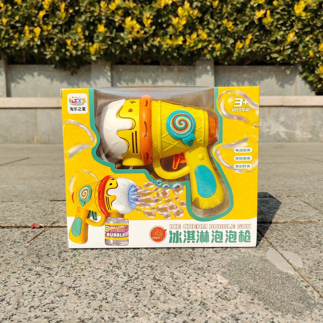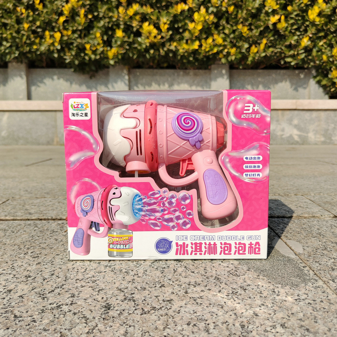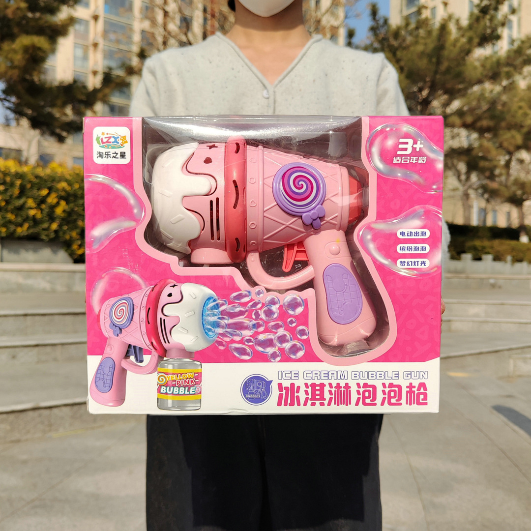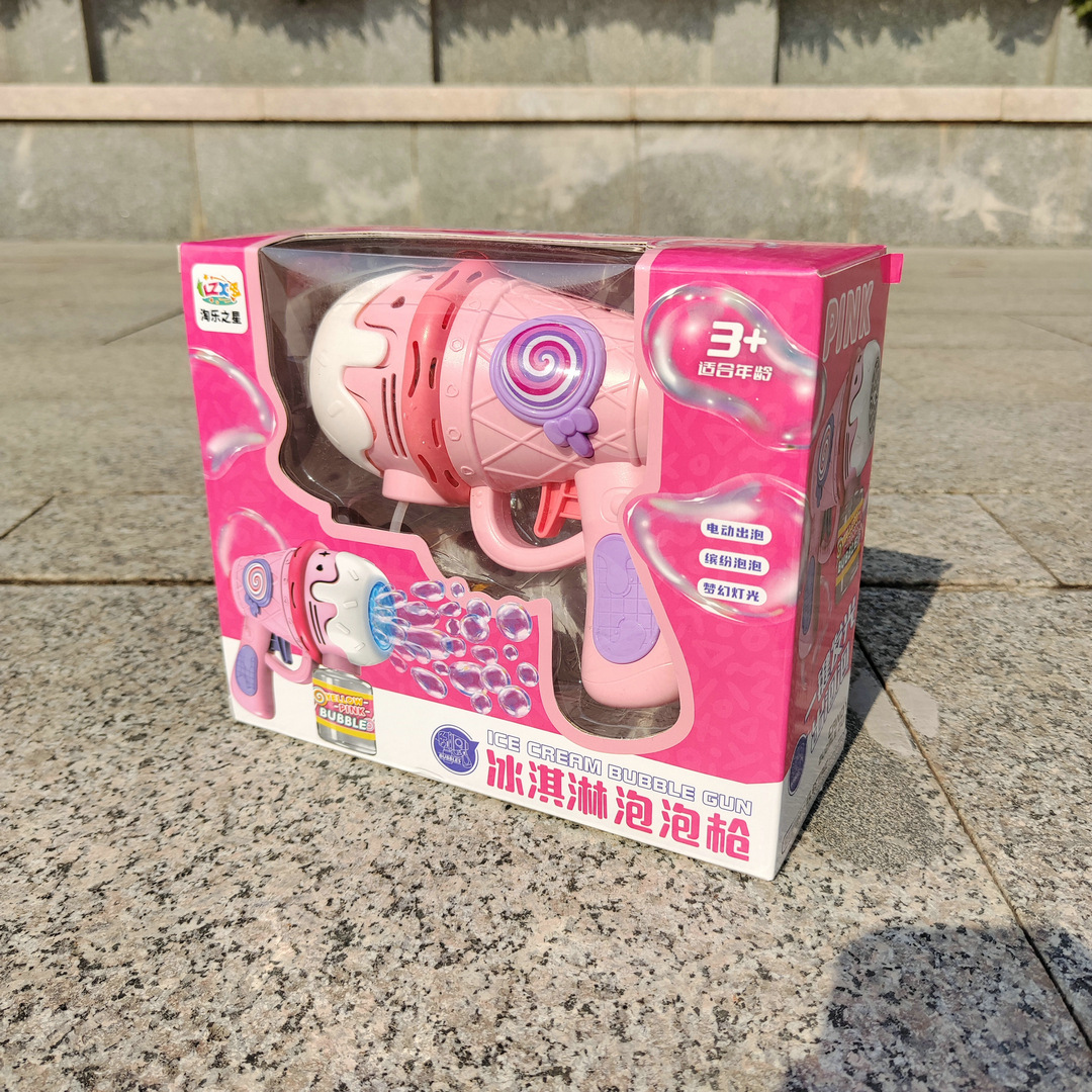 儿童冰淇淋泡泡枪手持灯光多孔全自动泡泡机户外春游摆摊玩具批发