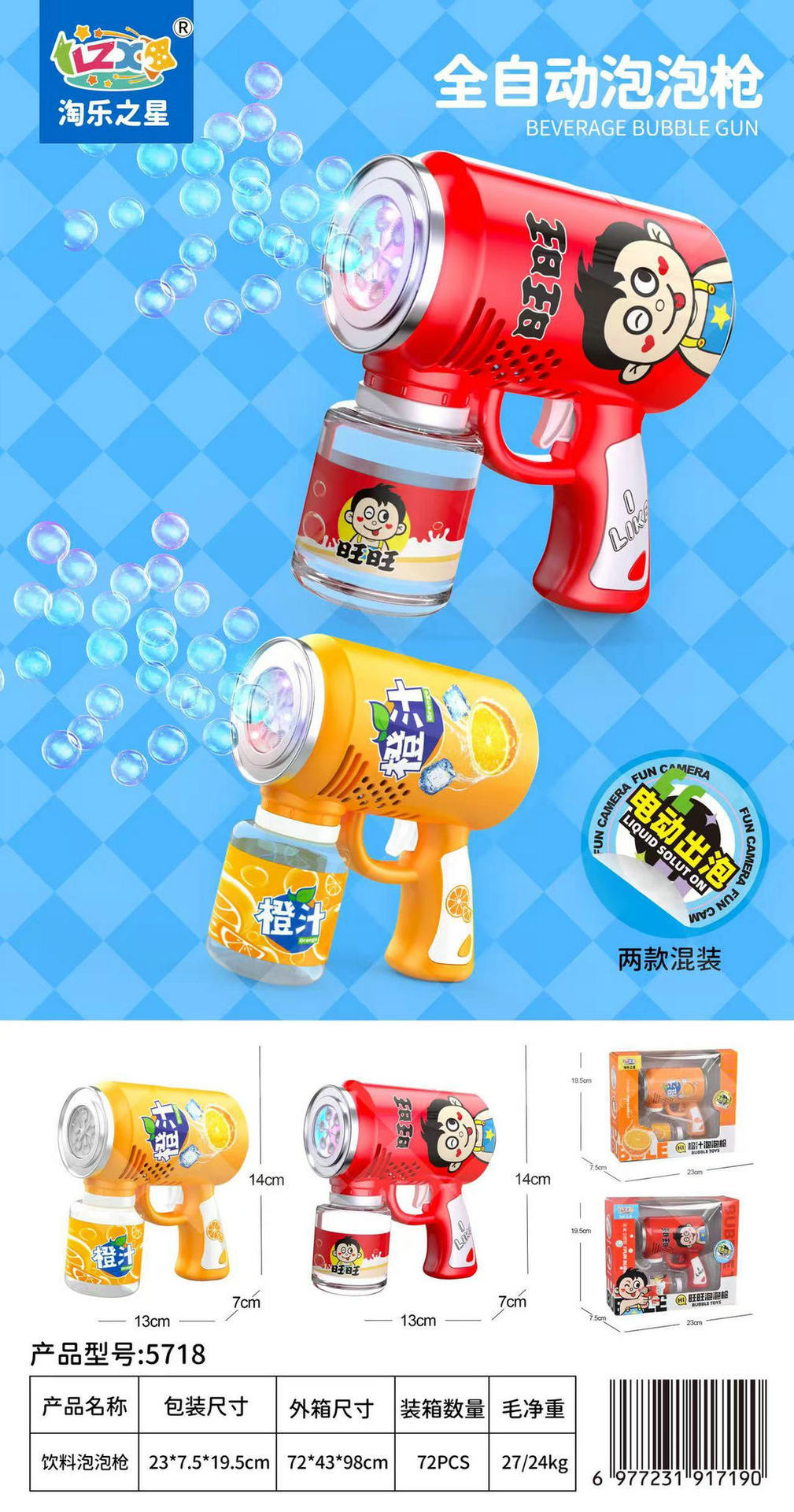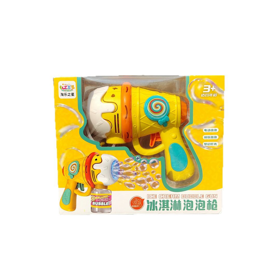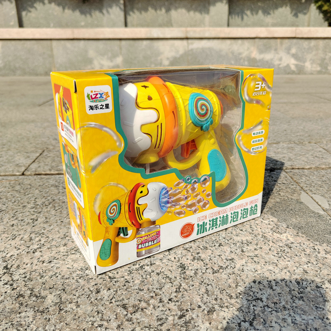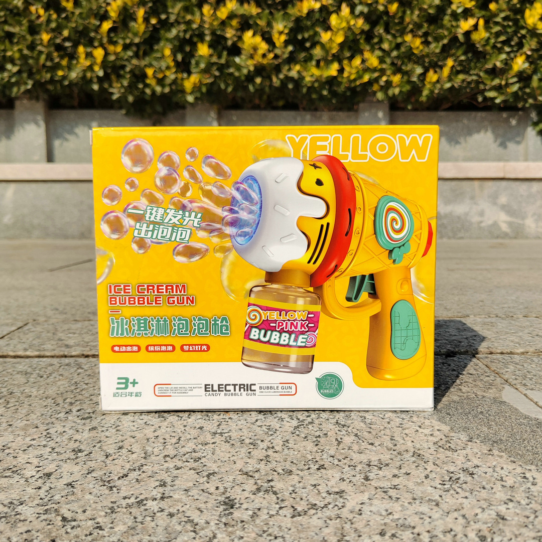 儿童冰淇淋泡泡枪手持灯光多孔全自动泡泡机户外春游摆摊玩具批发