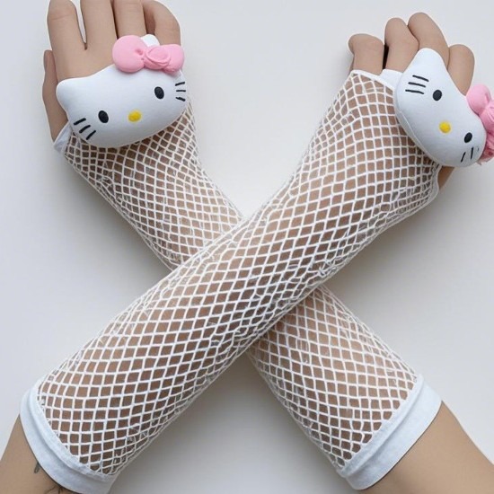 网眼防晒袖套库洛米三丽鸥系列渔网手套JK女孩搭配网眼手套
