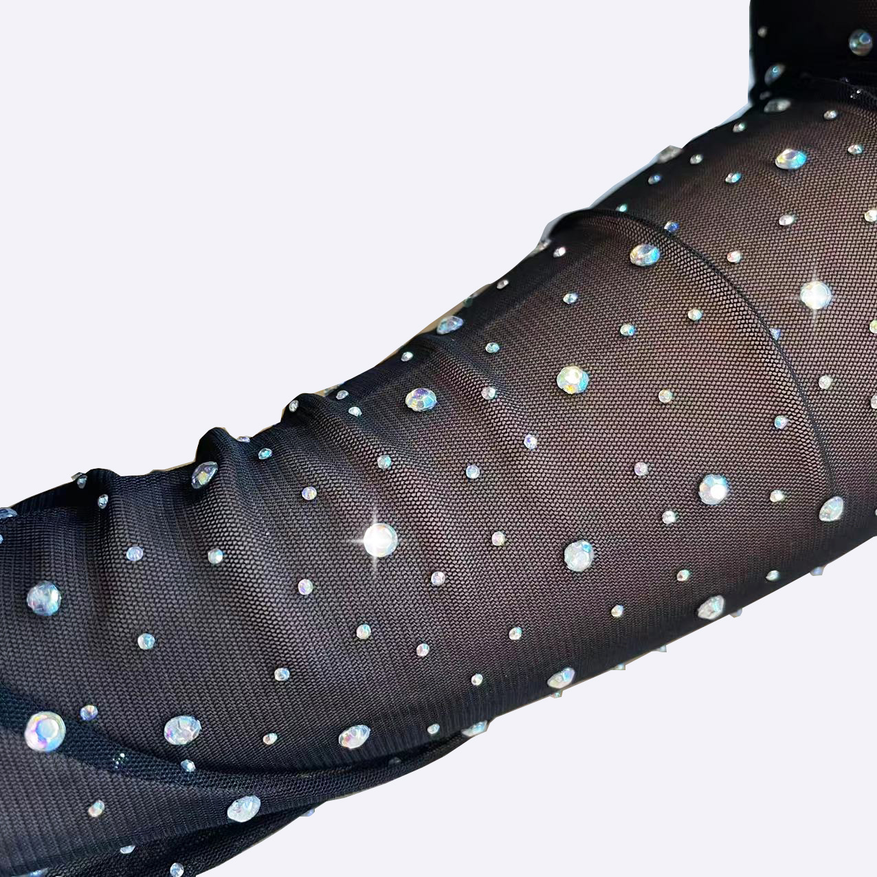 新款烫闪钻网纱手套女超薄长款夏季开车骑车性感黑色防晒手臂袖套