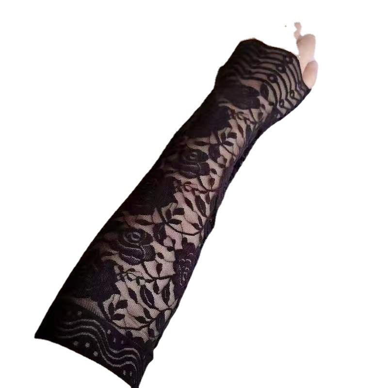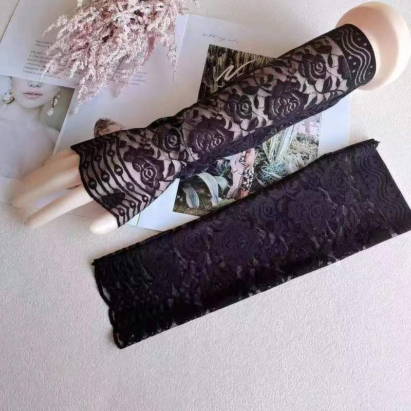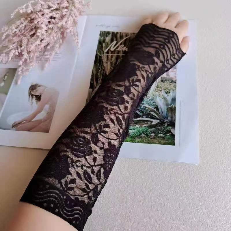 大弹力夏季防晒手臂套女开车遮阳黑色蕾丝袖套婚纱礼服假袖子批发