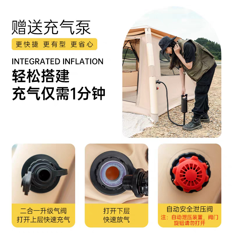 充气帐篷天幕二合一单层3-4人亲子户外露营山地野营云筑小屋脊