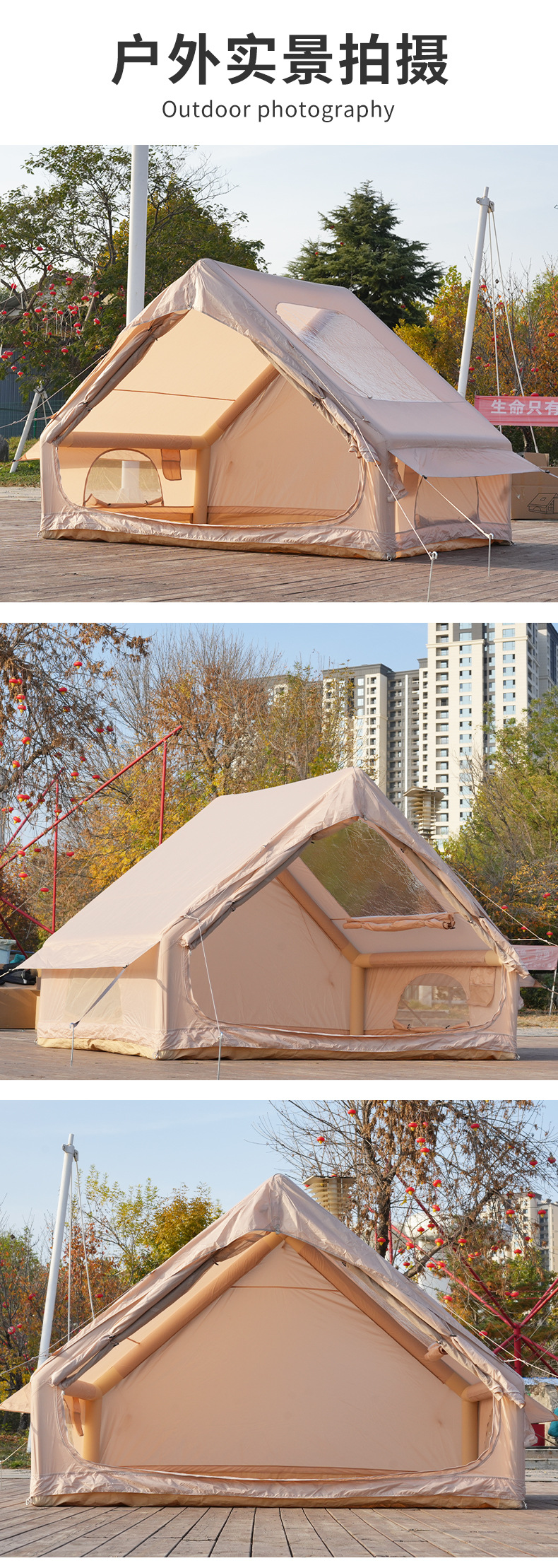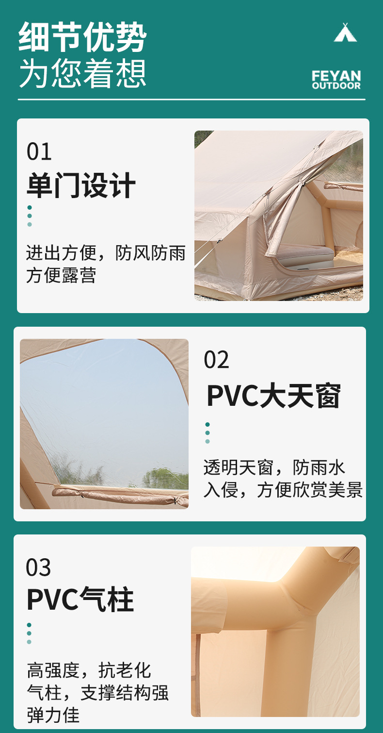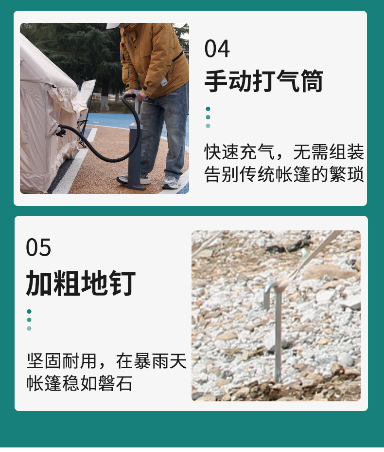6.3平米4-5人亲子露营充气帐篷大天窗敞型门户外免安装充气帐篷