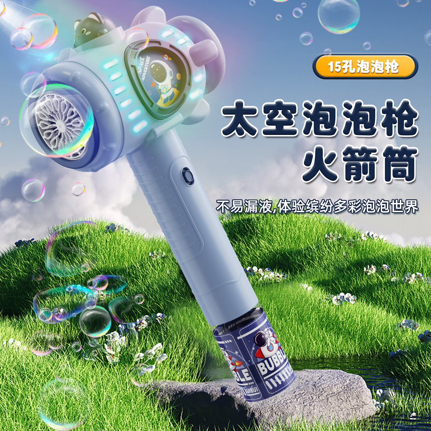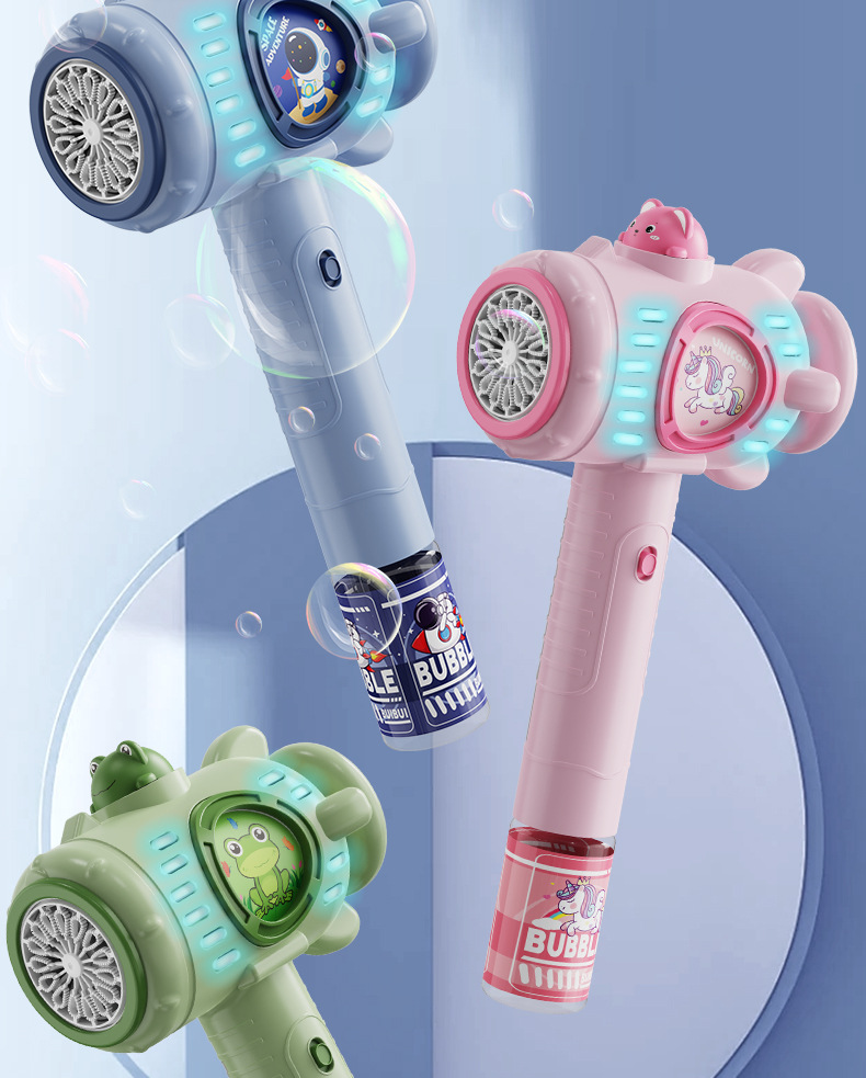 手持卡通自动泡泡机亲子户外互动玩具带电灯光不漏液跨境批发新款