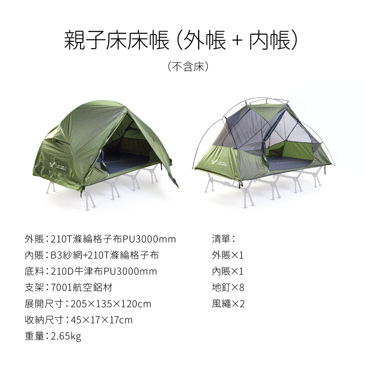 【无界露营】户外露营双人行军床专用帐篷便携野营帐篷(不含床)