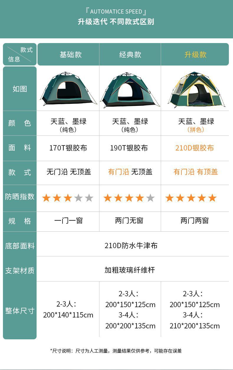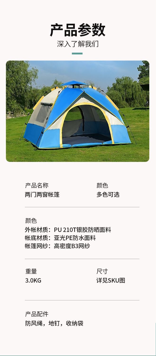 露营帐篷套装户外便携式折叠野外装备野餐公园全自动加厚防雨防晒