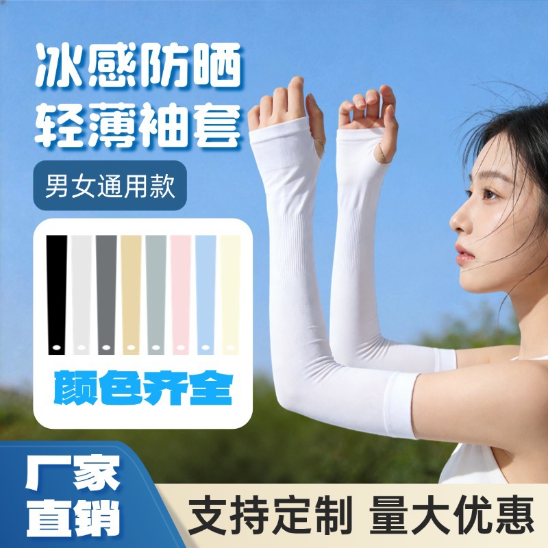 加长加厚冰袖男女无缝防晒袖套防紫外线冰丝袖套定制logo运动护臂