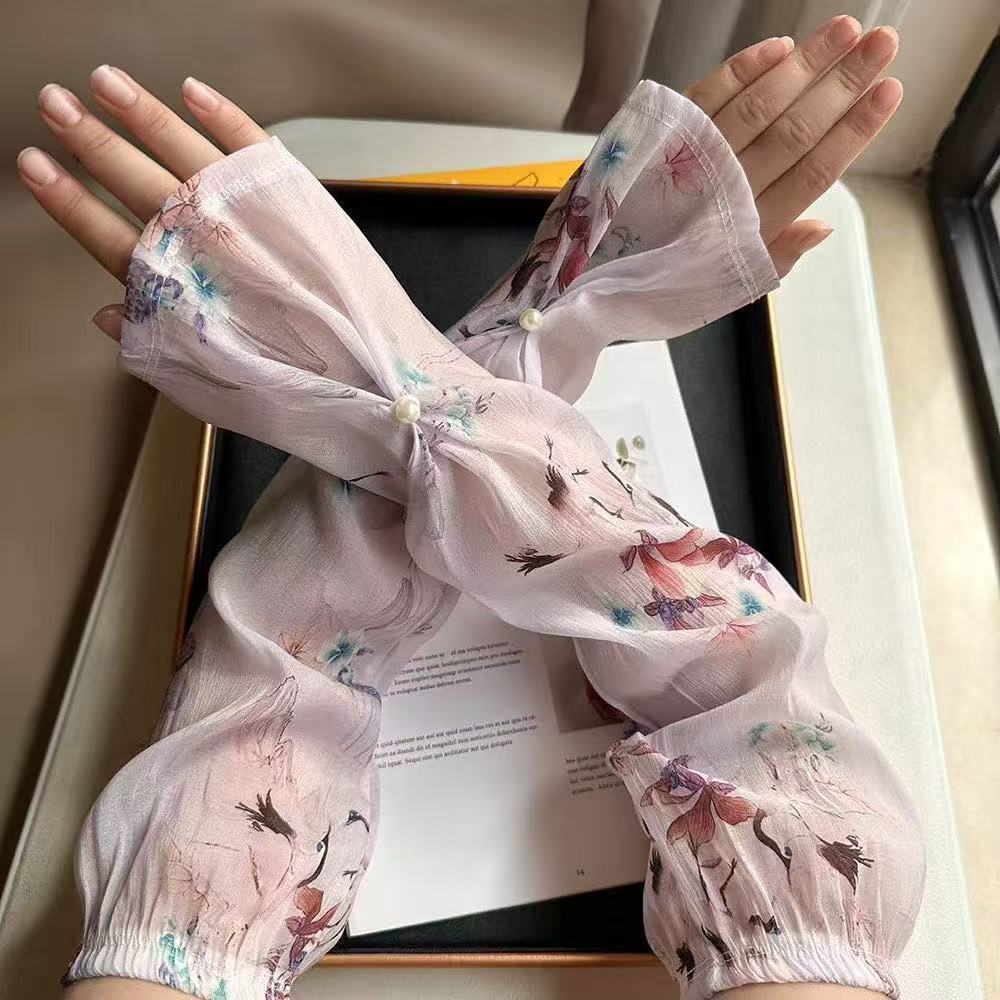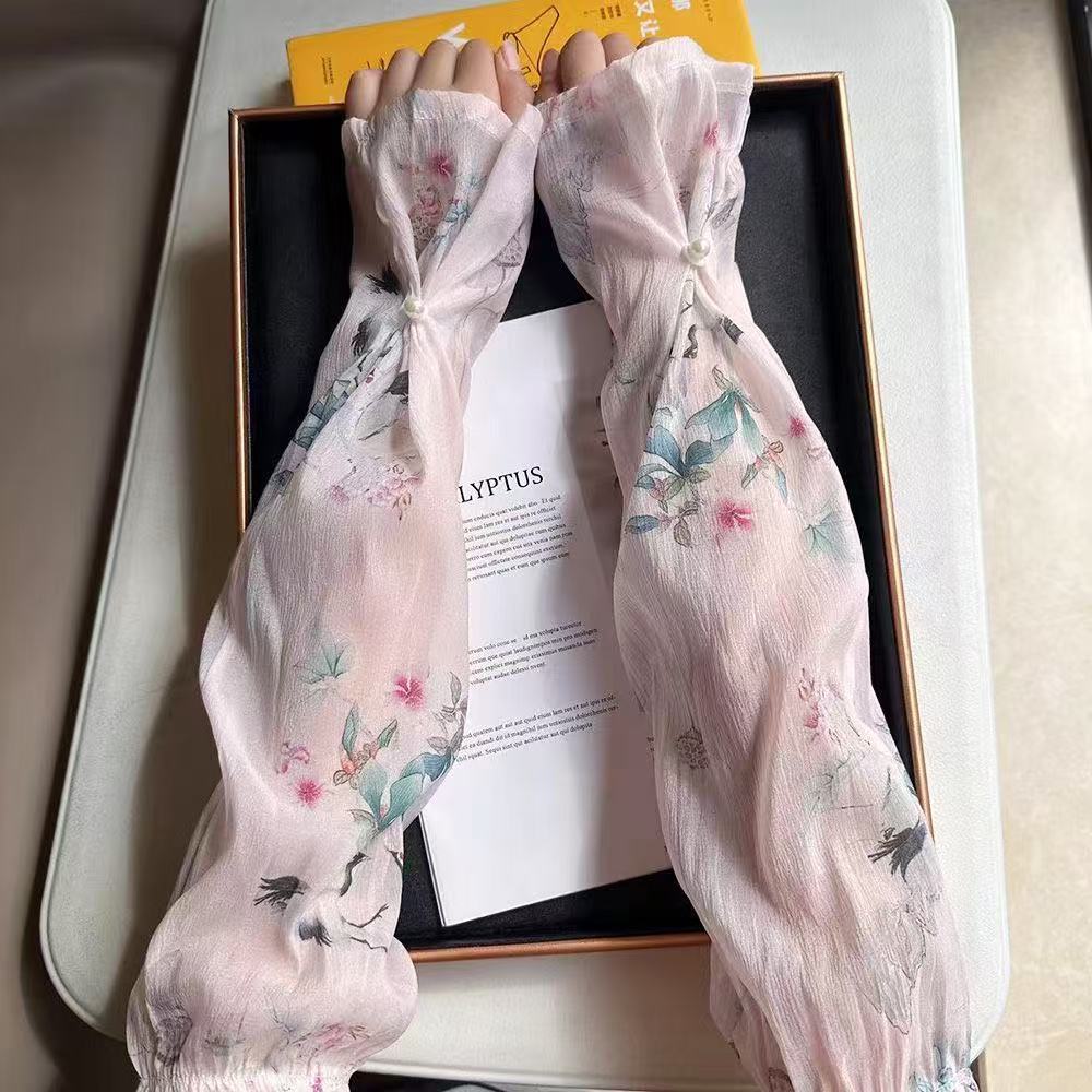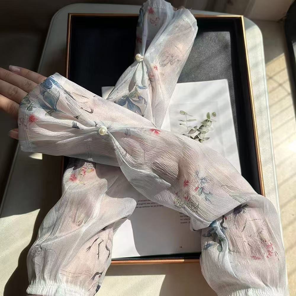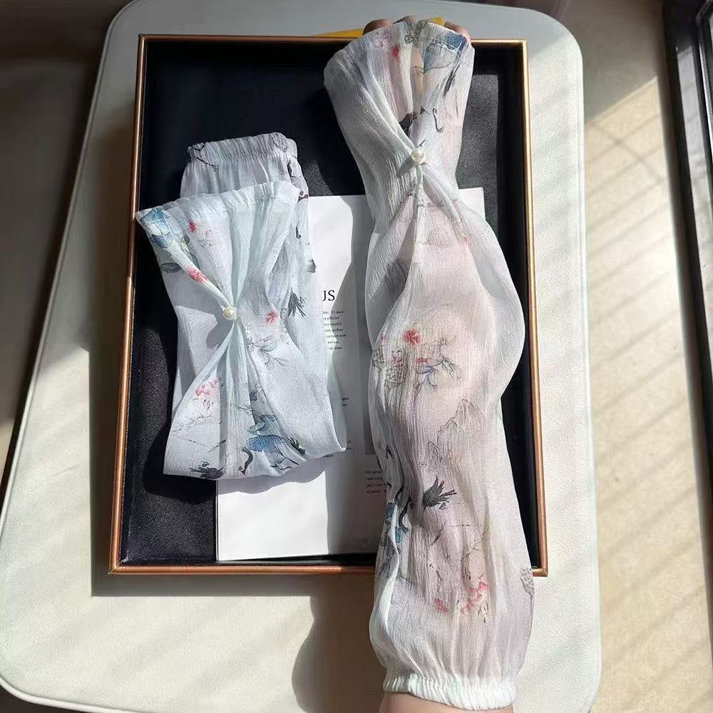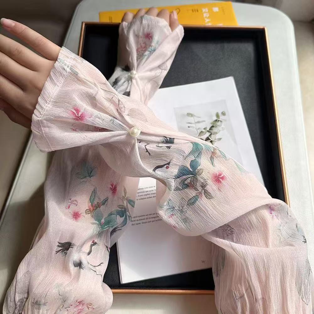 国风新中式薄纱袖套女夏宽松大版喇叭袖开车遮阳袖套古风防晒袖
