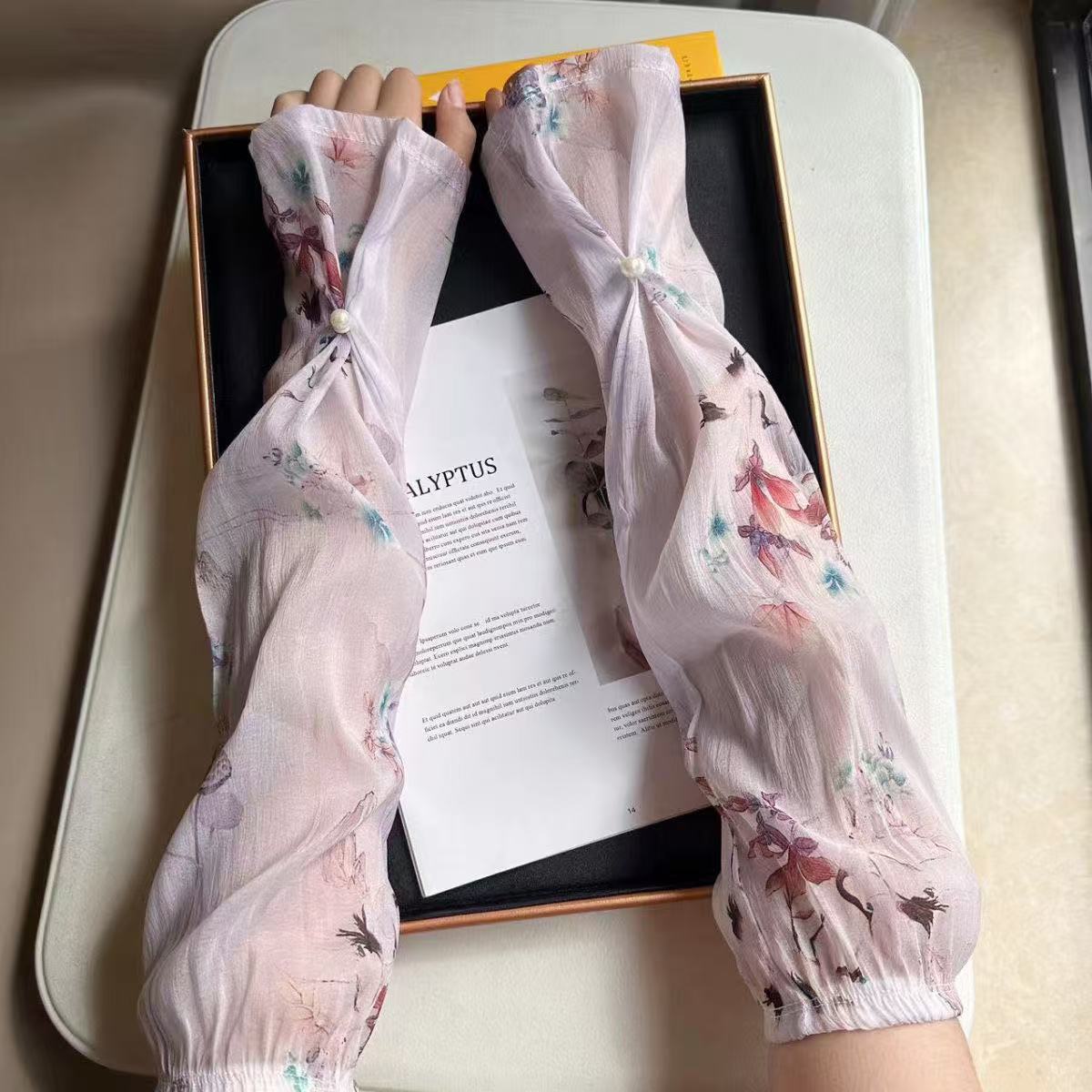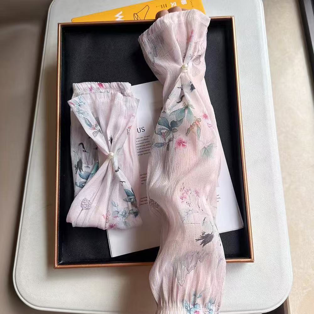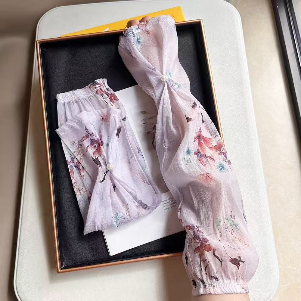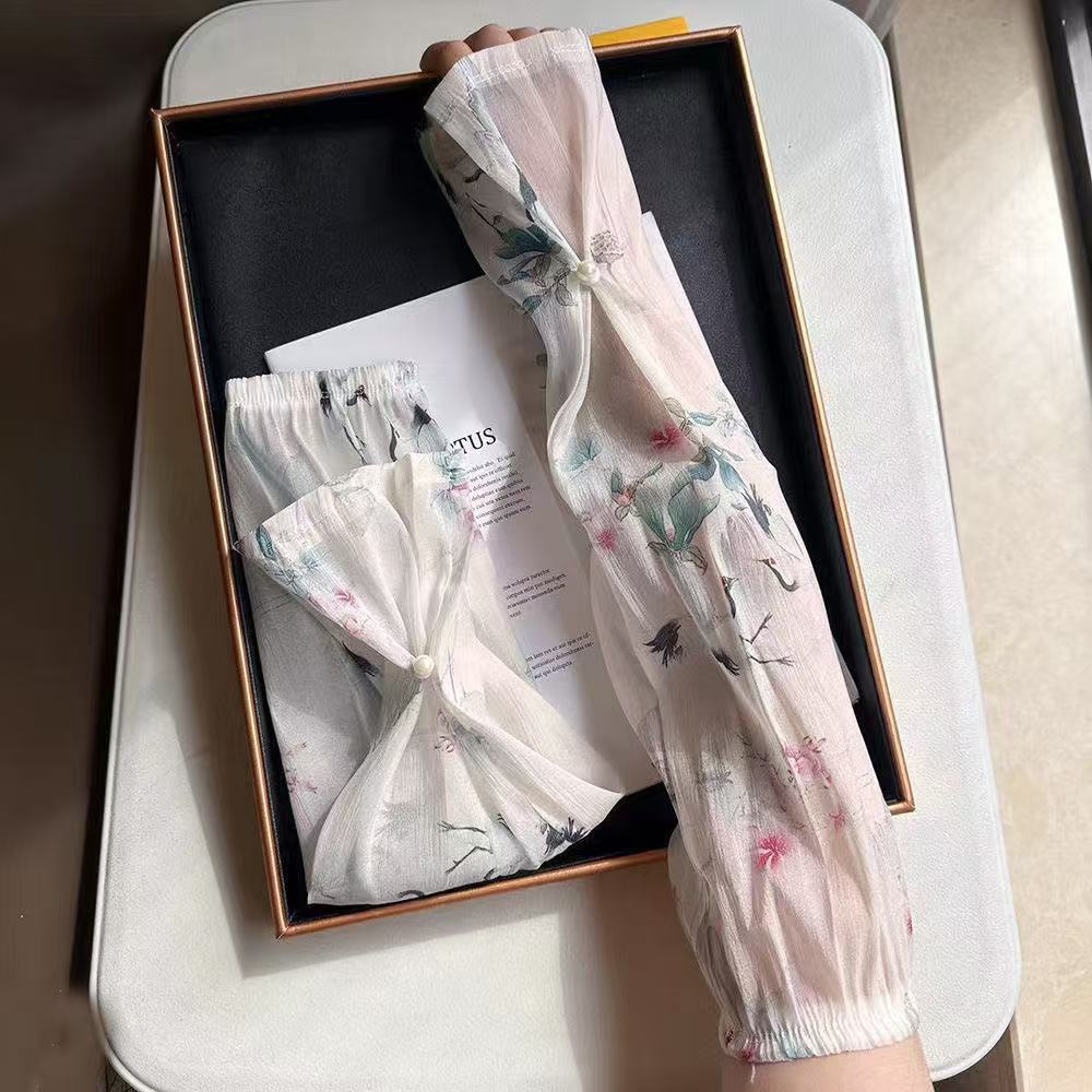 国风新中式薄纱袖套女夏宽松大版喇叭袖开车遮阳袖套古风防晒袖