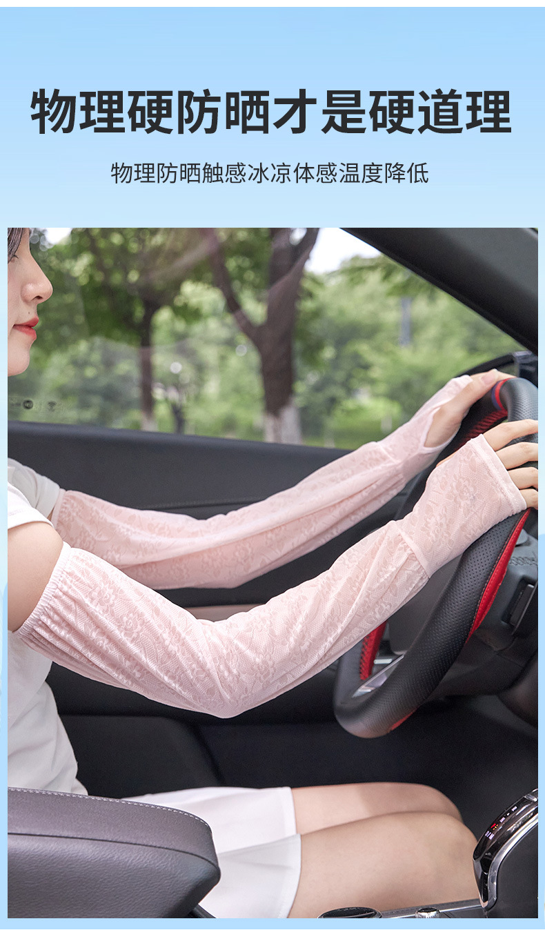 蕾丝防晒冰袖女士夏季防紫外线薄款户外骑车宽松护袖冰丝袖套透气