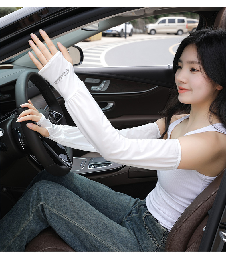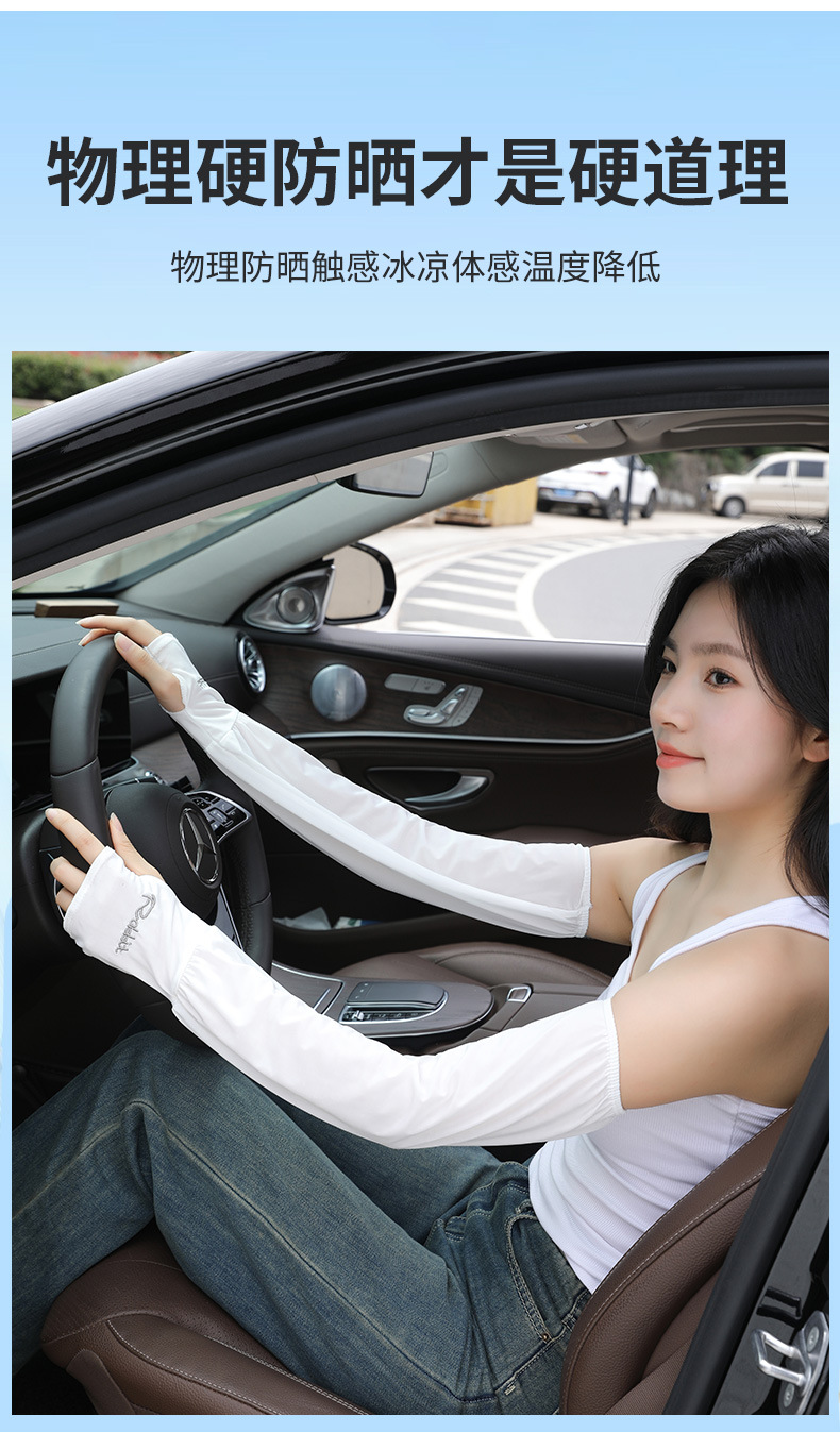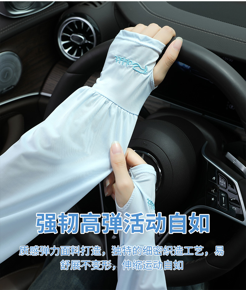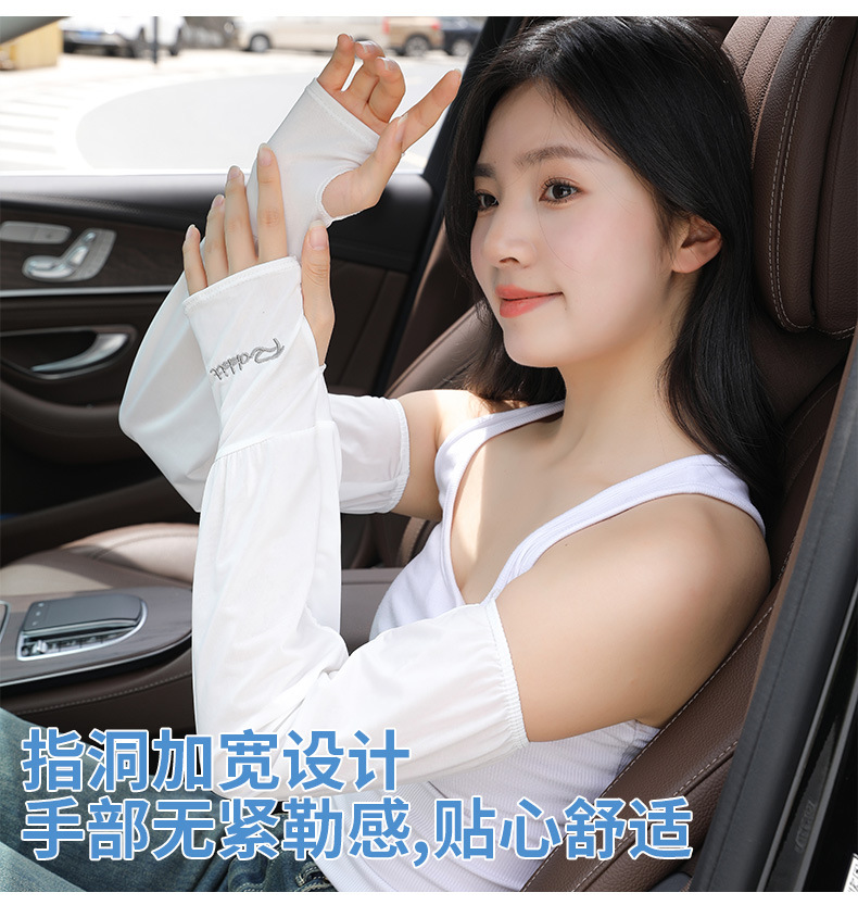 夏季户外开车防晒冰袖女透气套指轻薄宽松舒适出行冰丝袖套女批发