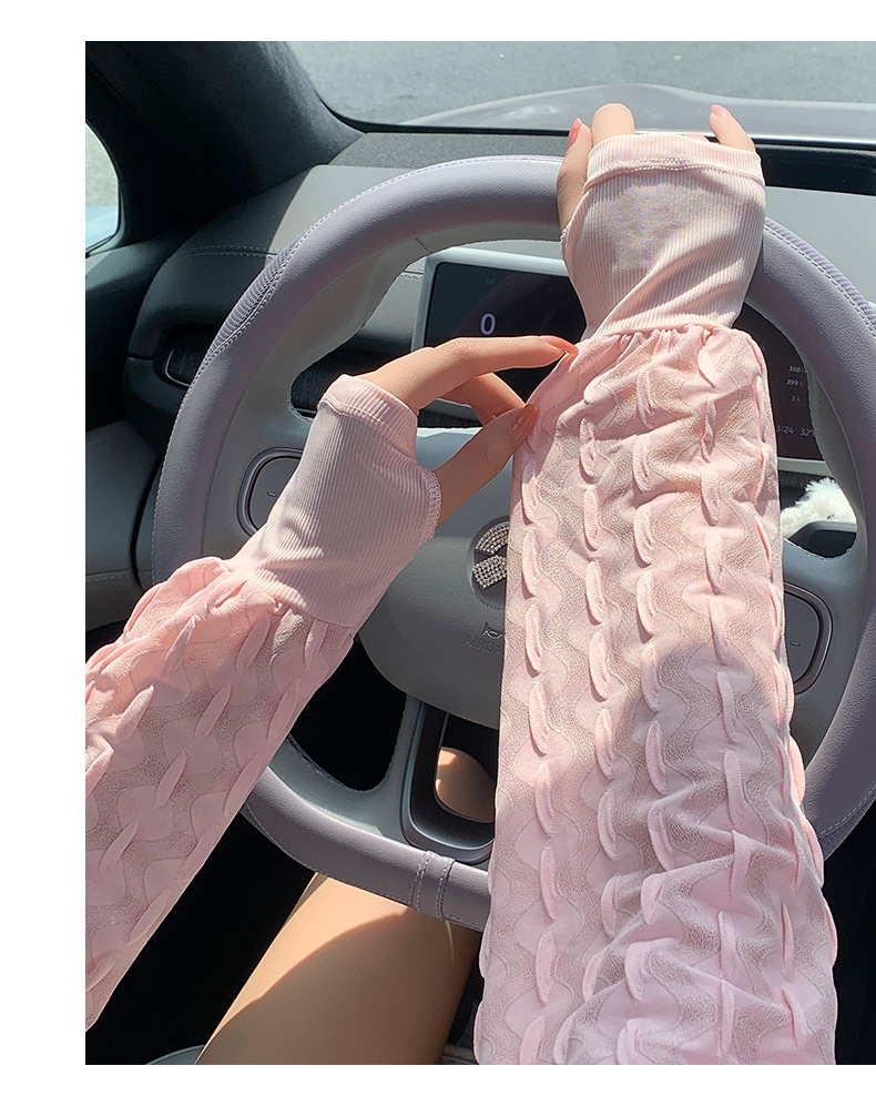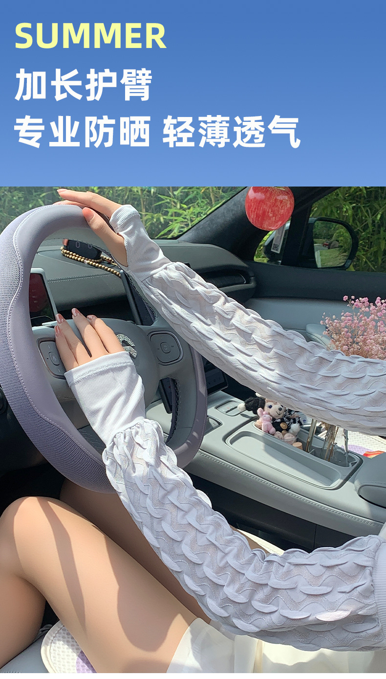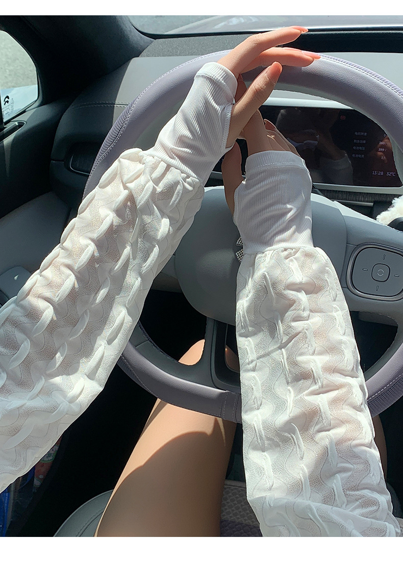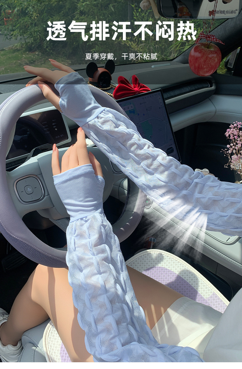 新款夏季泡泡防晒袖套女手套罗口宽松加大户外骑行开车护手臂冰袖