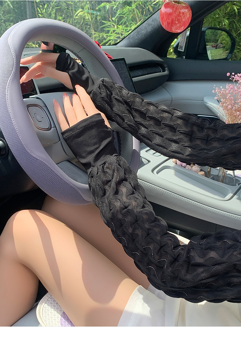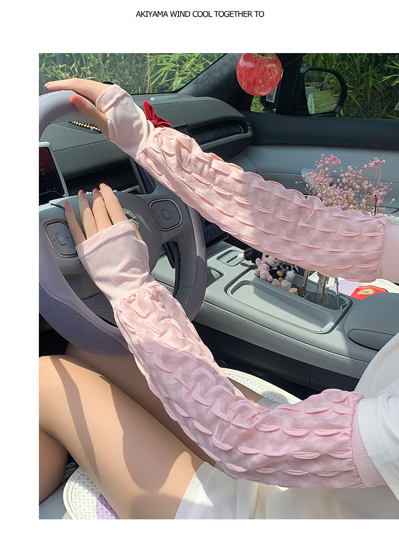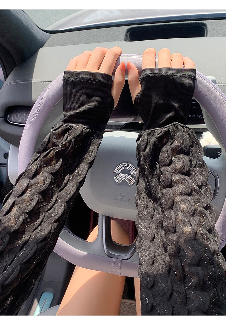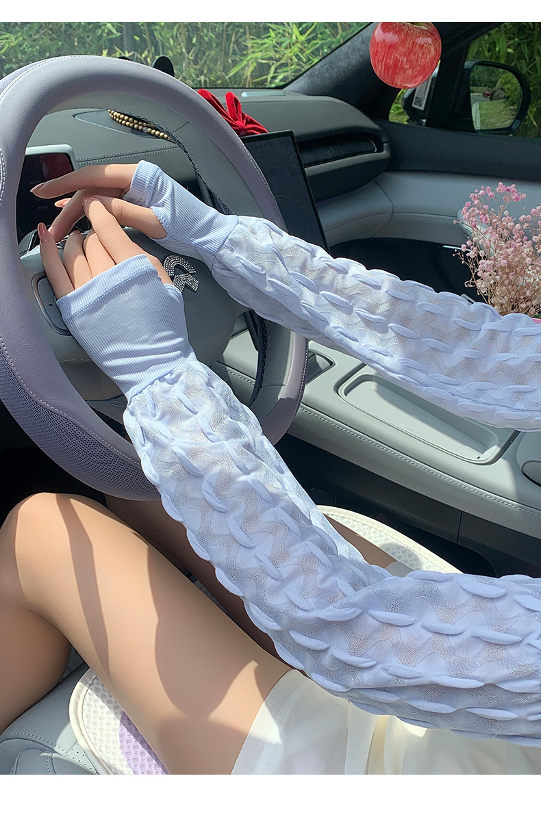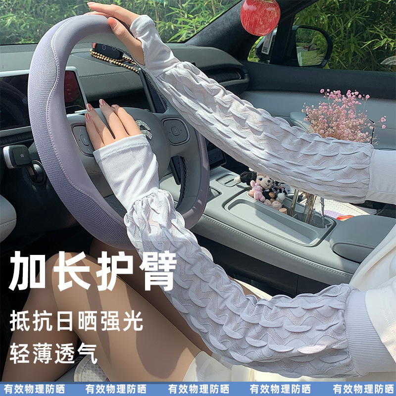 新款夏季泡泡防晒袖套女手套罗口宽松加大户外骑行开车护手臂冰袖