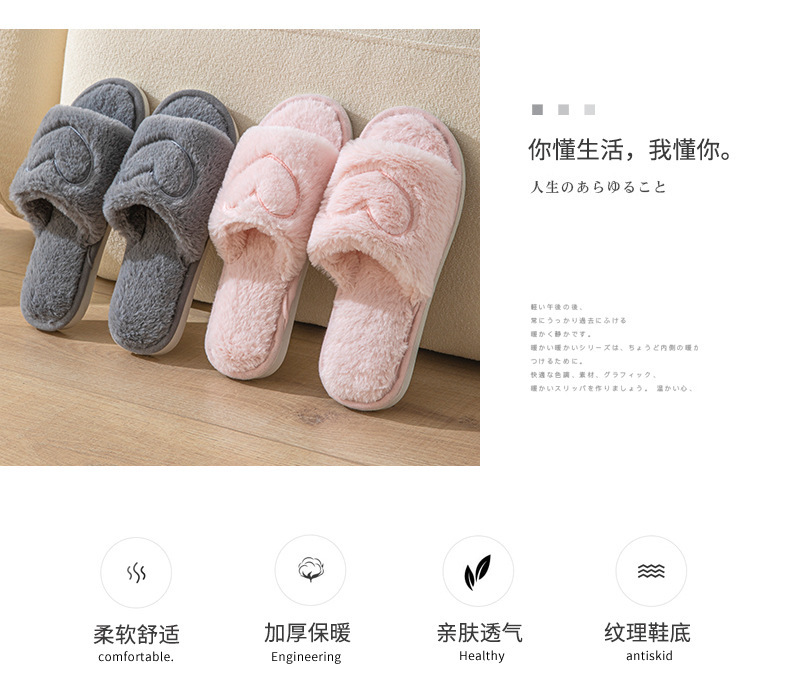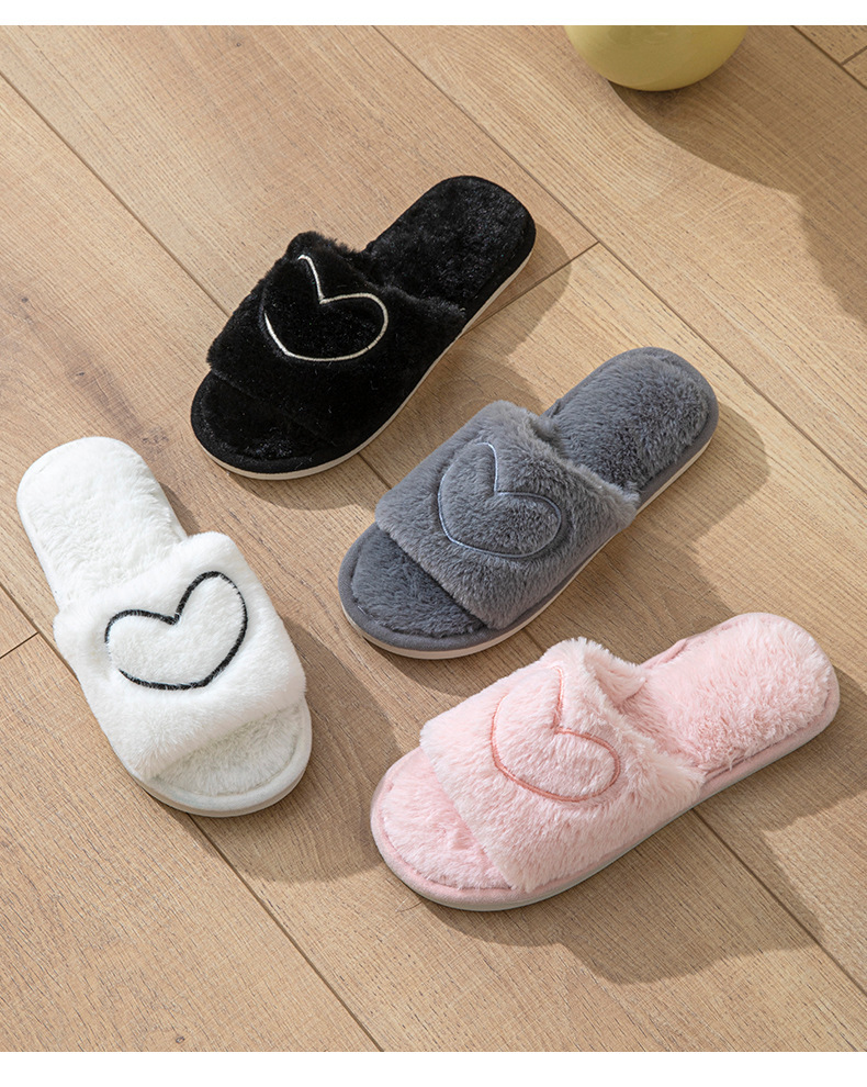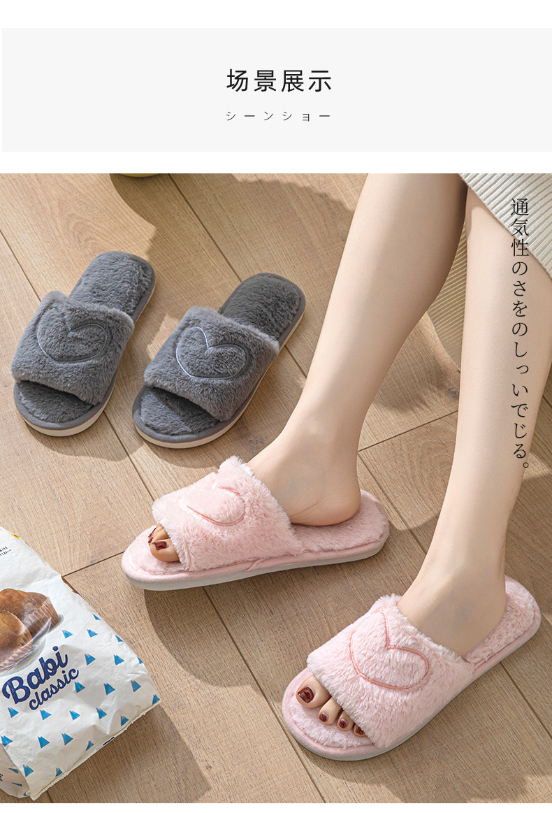 跨境毛毛开口一字露趾TPR男女情侣室内外居家棉拖鞋四季毛拖鞋
