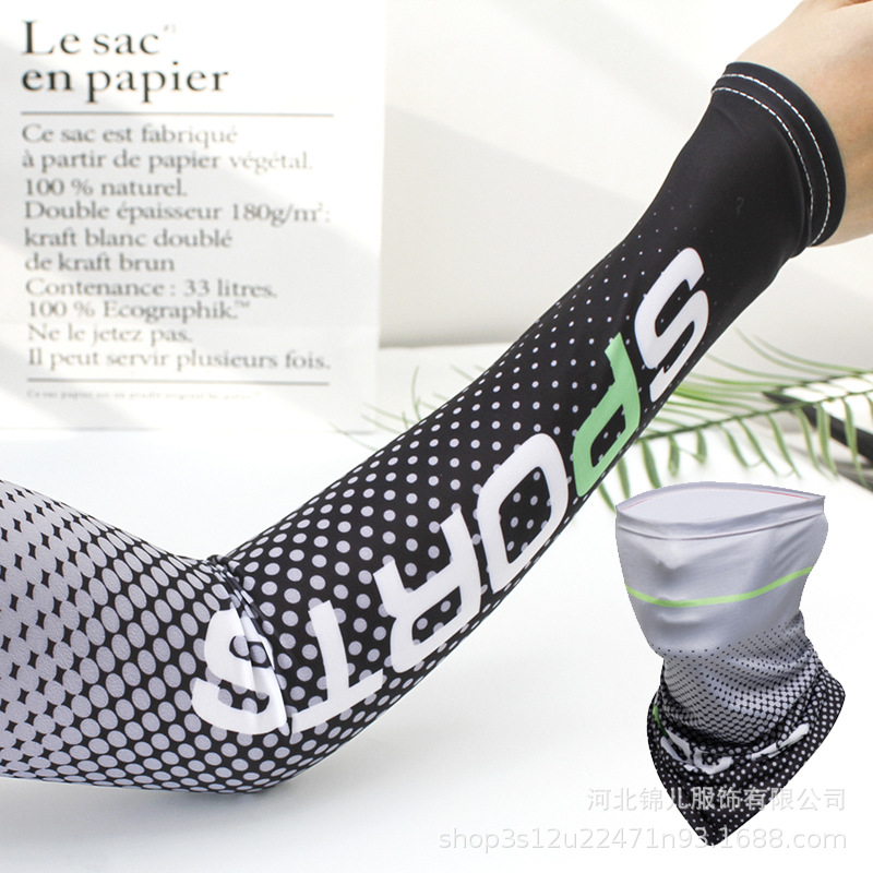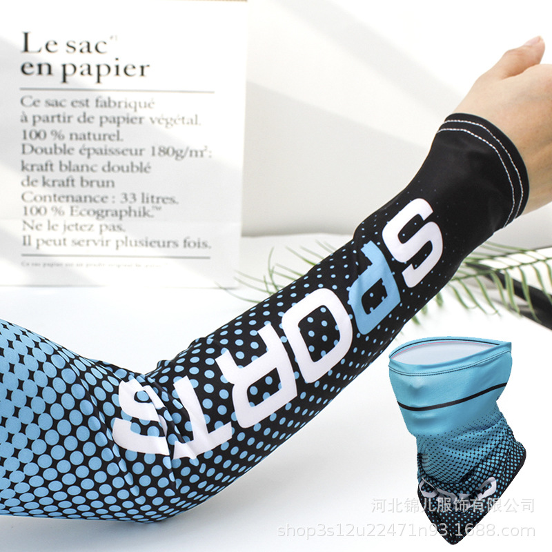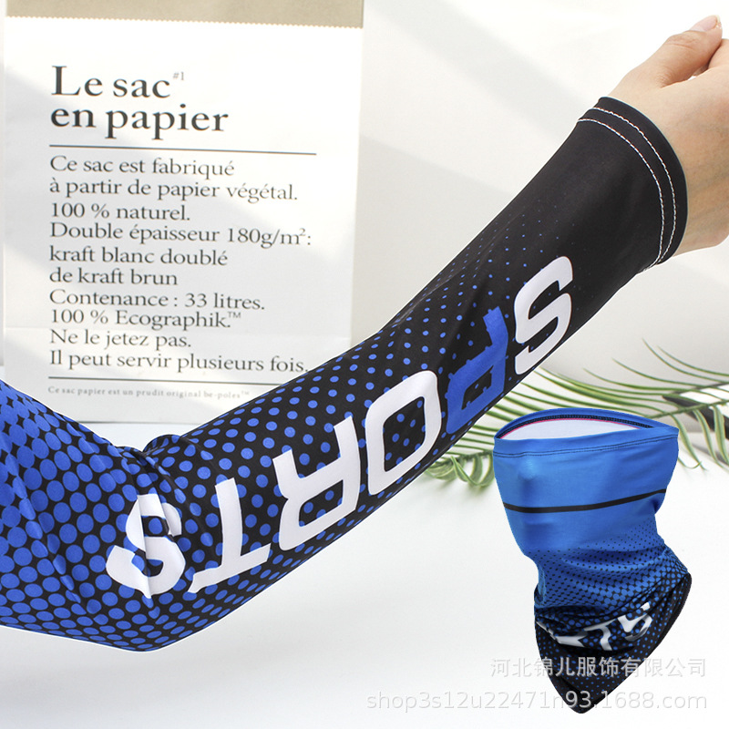 批发冰丝袖套夏季防晒面罩头巾遮阳护具开车骑行护臂套袖面巾代发