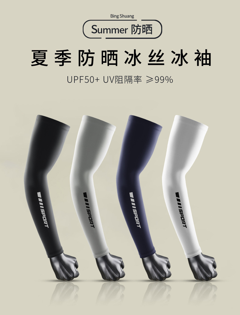 防晒袖套男透气冰丝手套户外骑行防紫外线夏季运动风薄款冰袖批发