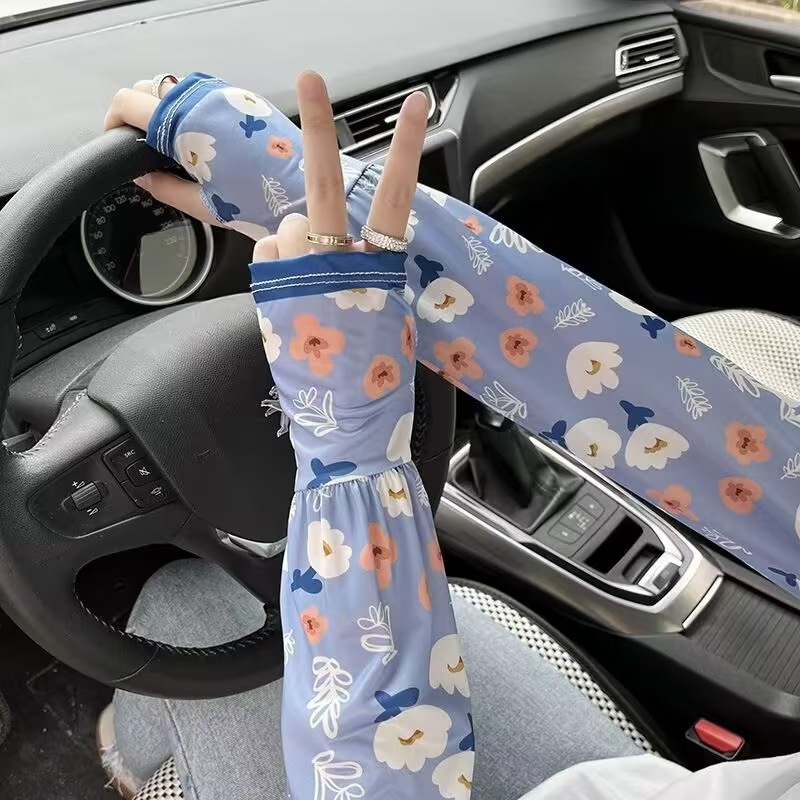 防晒冰丝袖套女夏季薄款宽松手臂套户外开车防紫外线轻薄透气手袖