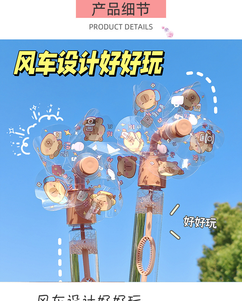 卡皮巴拉风车泡泡棒大号儿童手持泡泡机吹泡泡玩具可爱创意男孩女