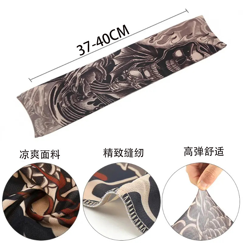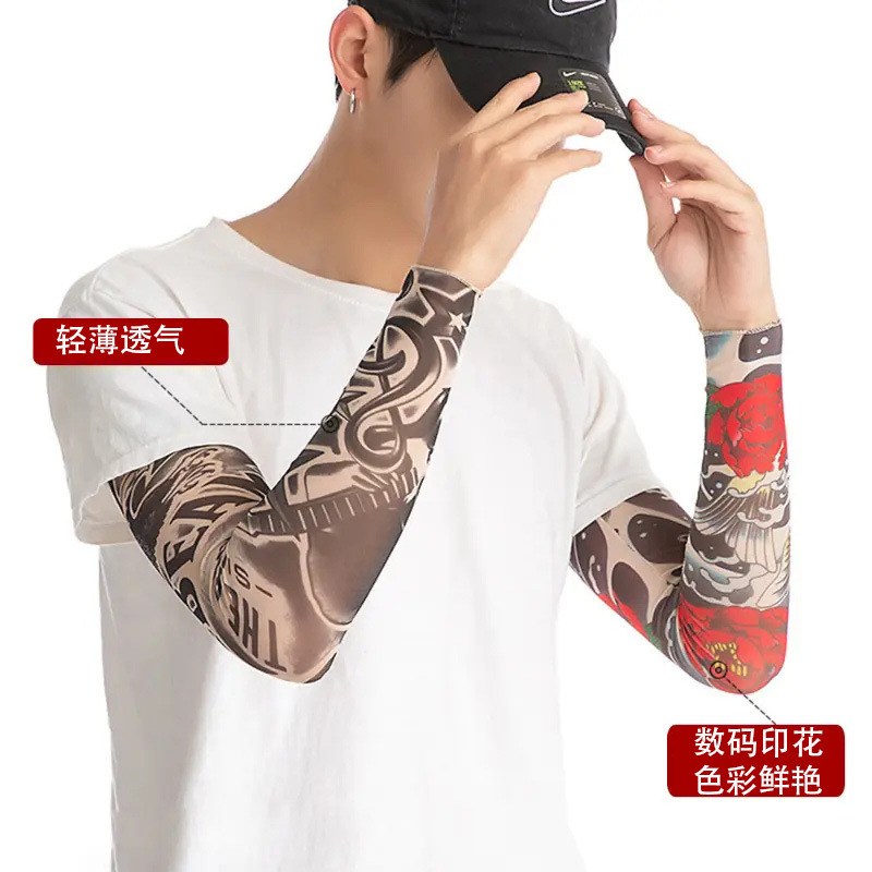夏季户外运动骑行纹身花臂无缝袖套遮阳防晒速干冰丝刺青印花袖套