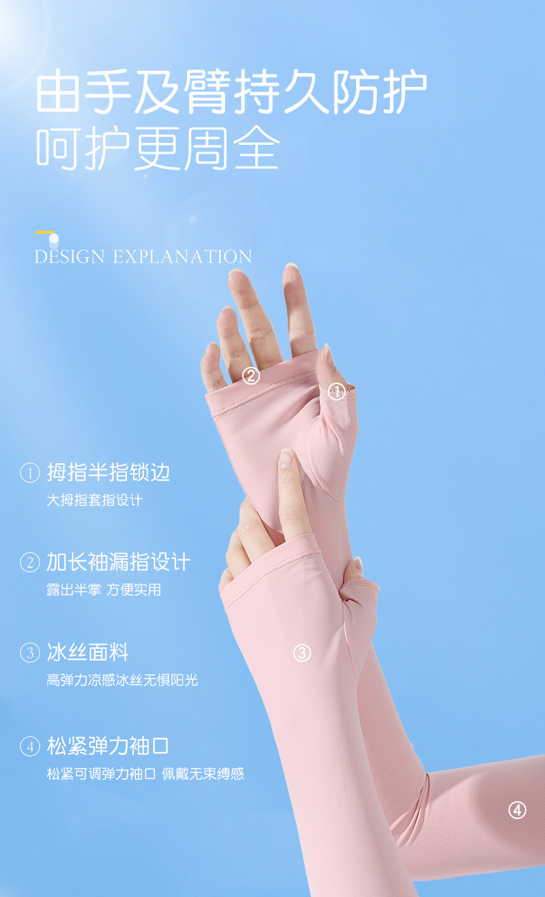 夏季防晒袖套防紫外线户外冰袖骑行锦纶冰丝女长防晒手套厂家批发