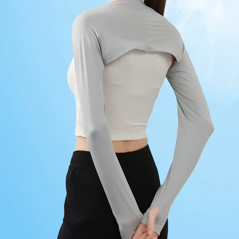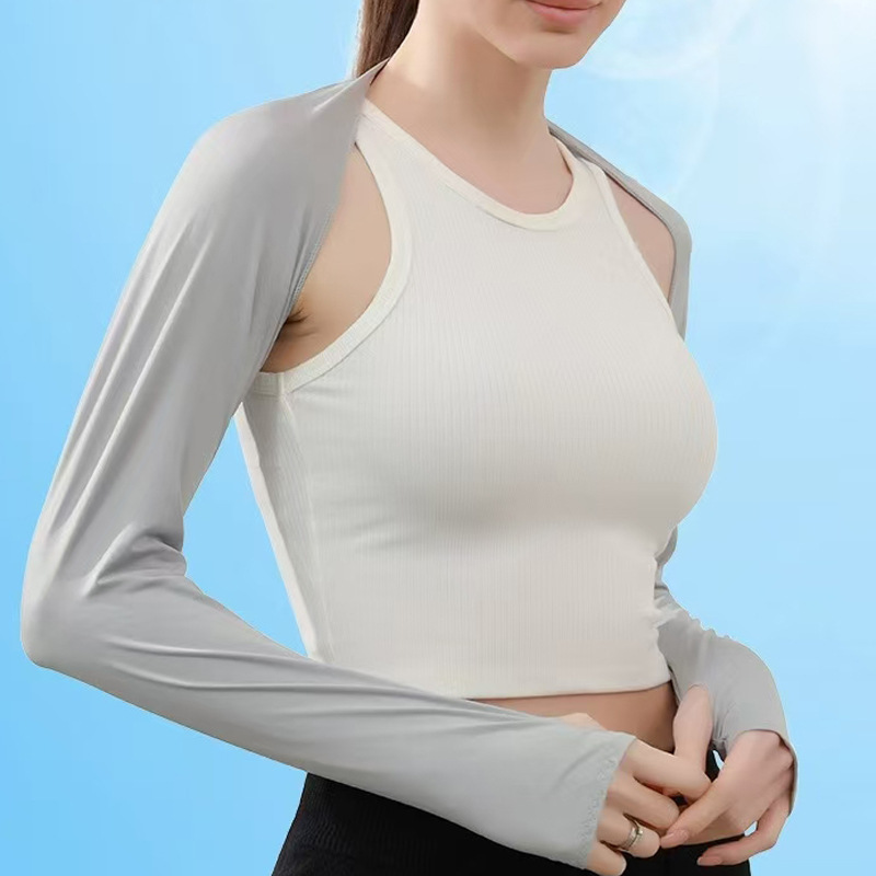 运动户外骑行防晒披肩冰袖套一体连体一字肩冰丝透气防紫外线坎肩