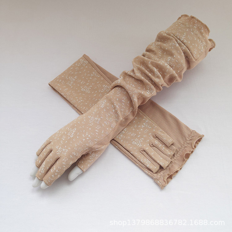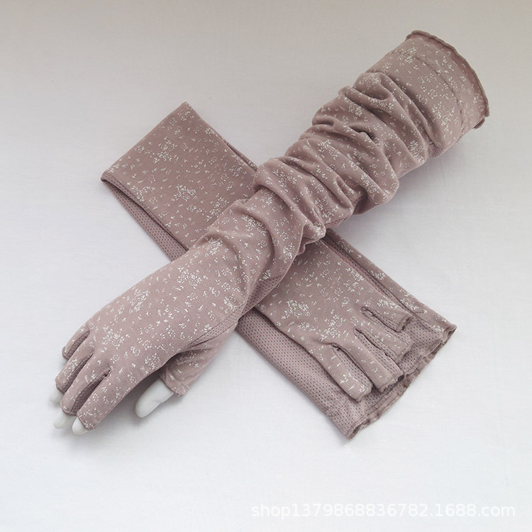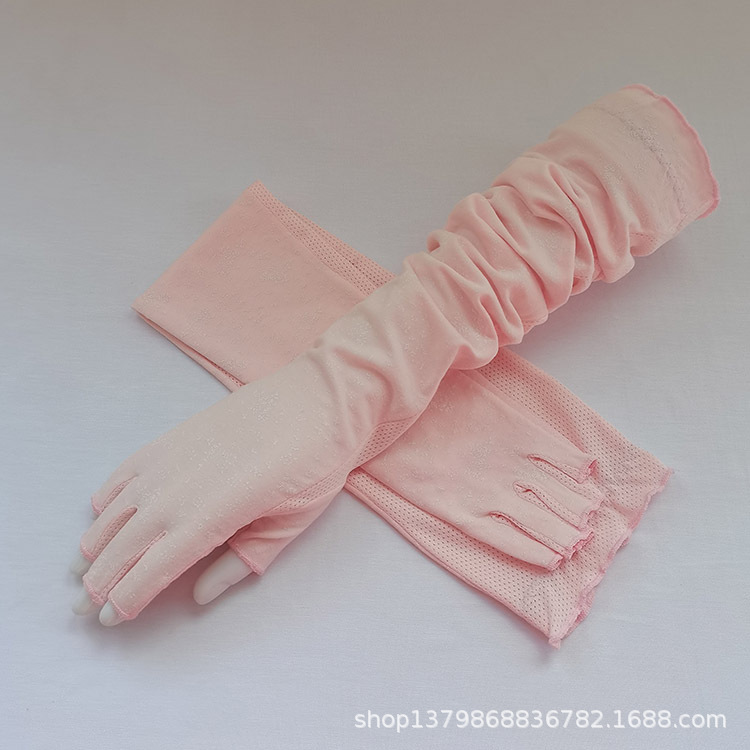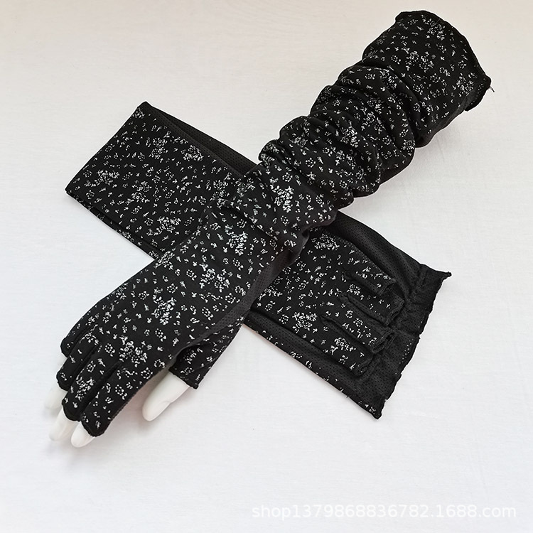 夏季防晒手套 女士开车防滑半指触屏棉质 电动车防紫外线长款袖套