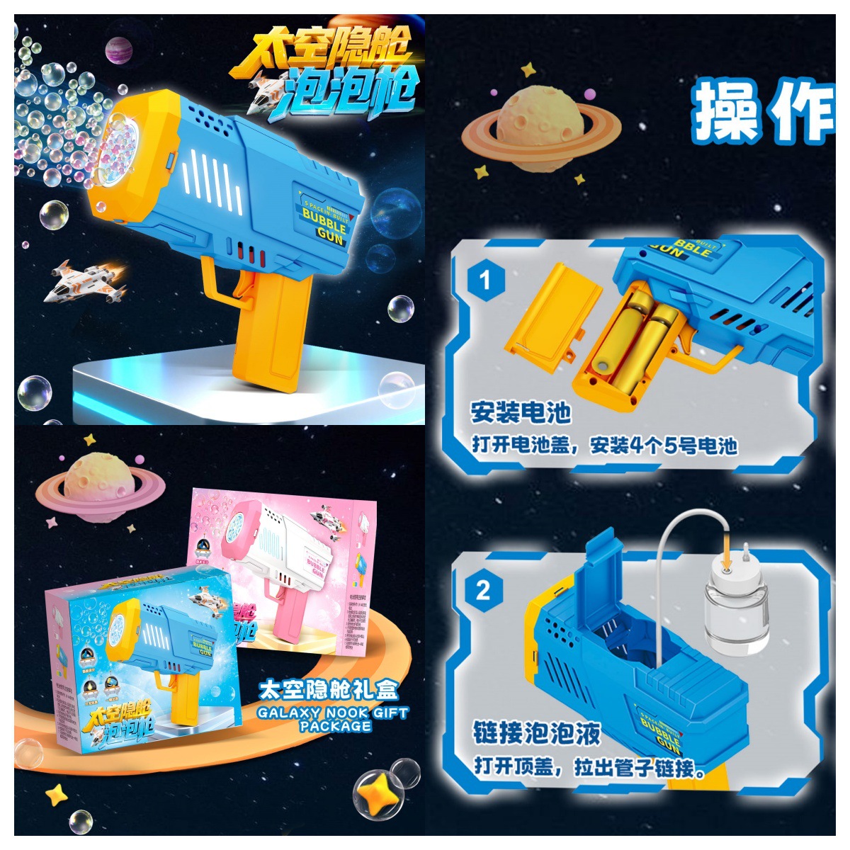 网红泡泡机儿童手持全自动吹泡泡电动32孔泡泡枪公园地摊玩具批发