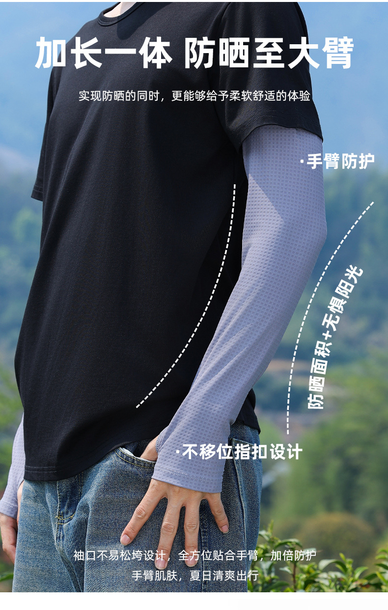 防晒冰丝袖套女士夏季防紫外线开车骑行加长护臂手袖宽松冰袖男士