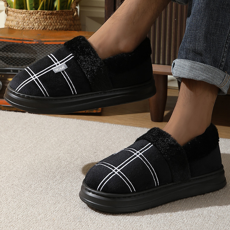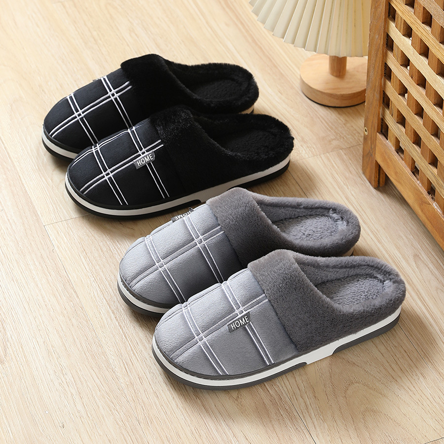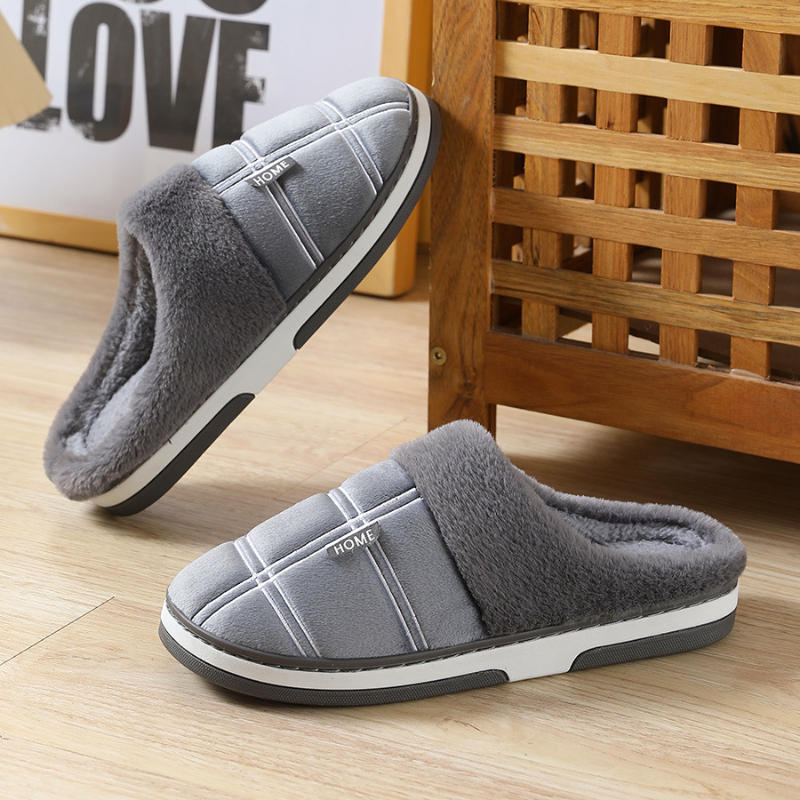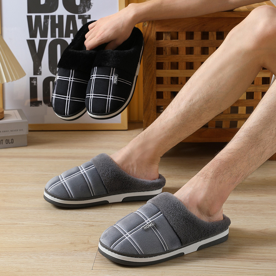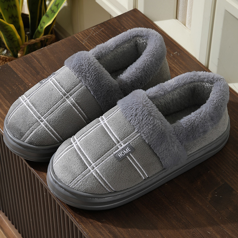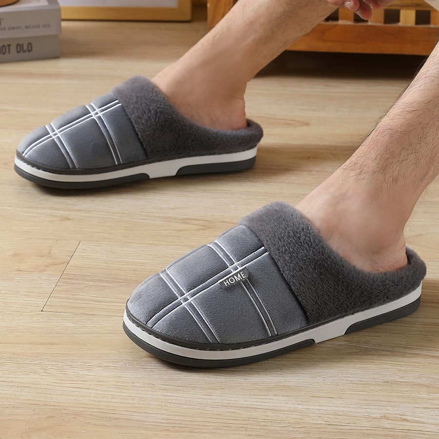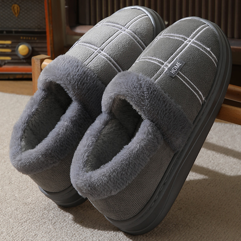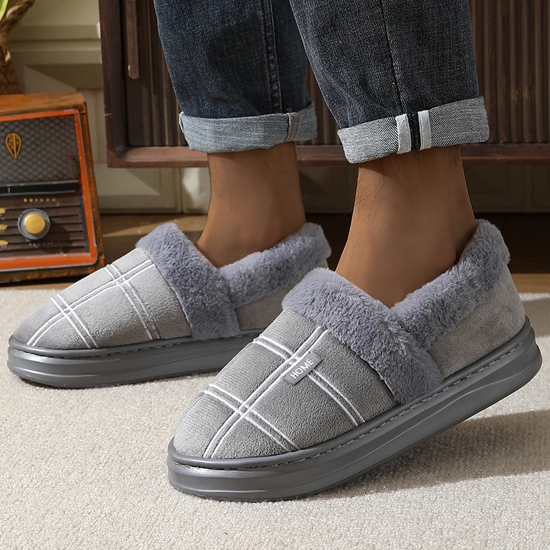 特大码棉拖冬季防滑居家绒面拖鞋男保暖厚底包跟棉鞋45 46 47 48