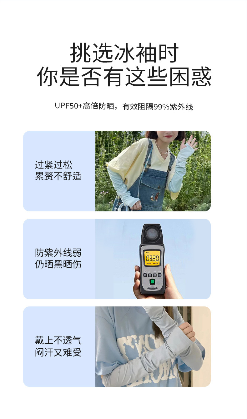 VVC冰袖防晒冰丝手袖套男女开车加长手套袖子防紫外线护手臂遮阳
