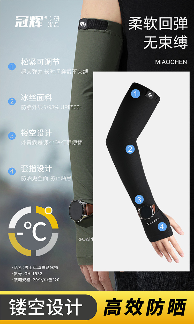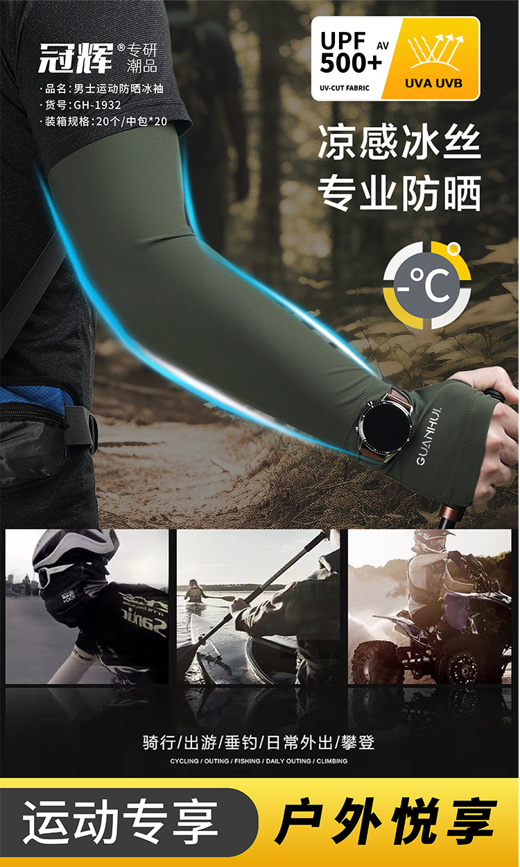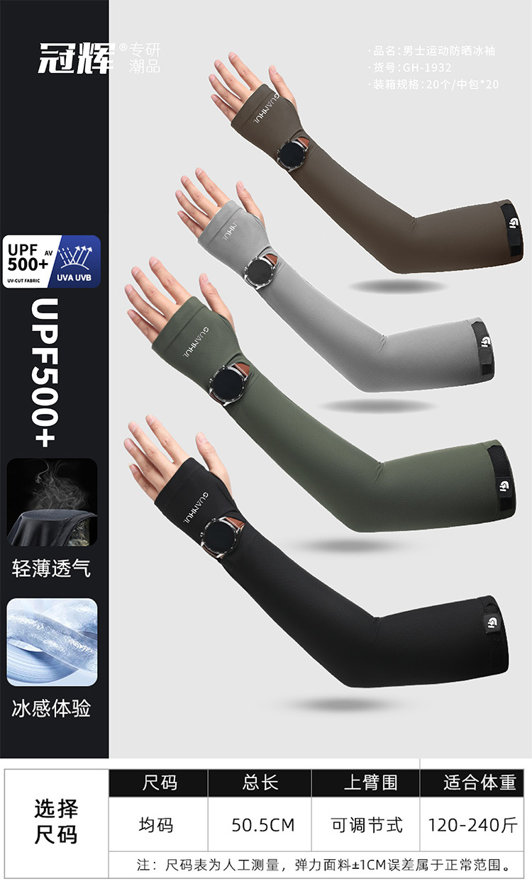 夏季防晒袖套男款冰袖冰丝套指手袖凉感透气防紫外线户外骑行护臂