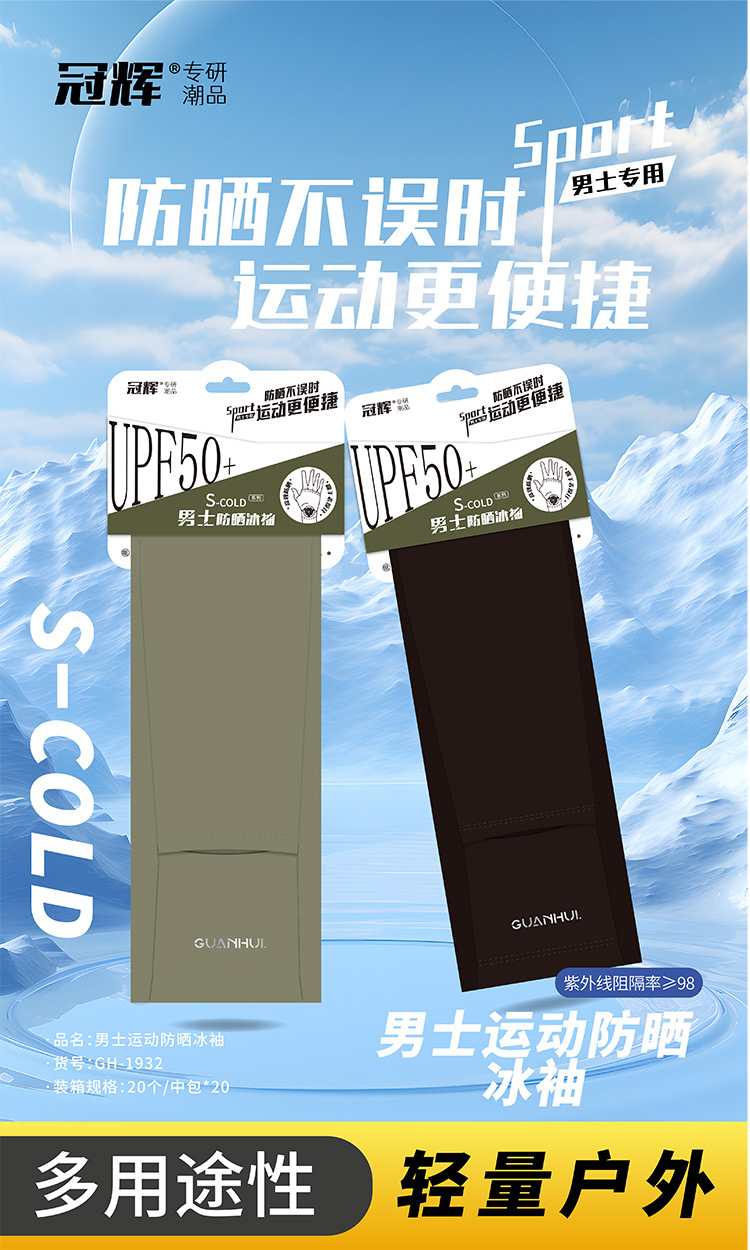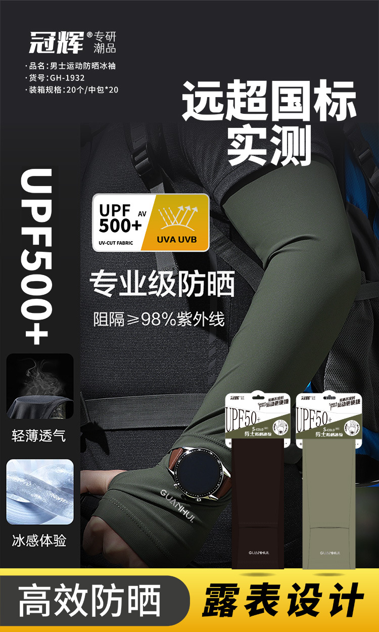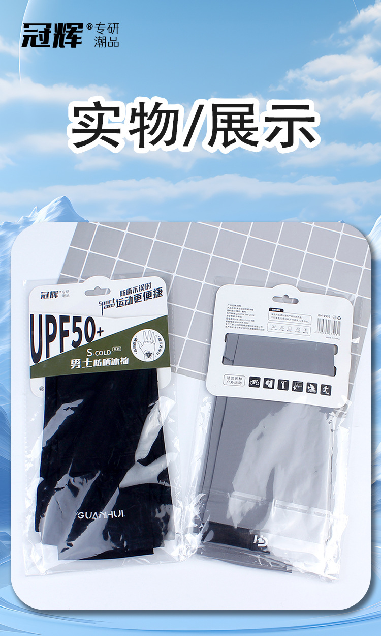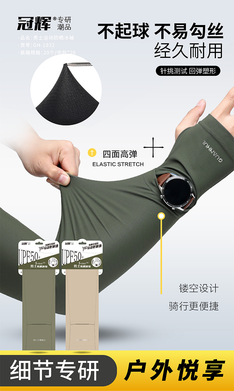 夏季防晒袖套男款冰袖冰丝套指手袖凉感透气防紫外线户外骑行护臂
