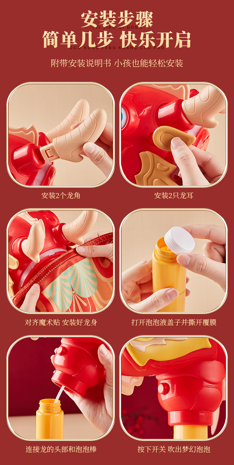 跨境爆款舞龙全自动泡泡机新年国粹舞龙玩具运动会幼儿园奖品礼品