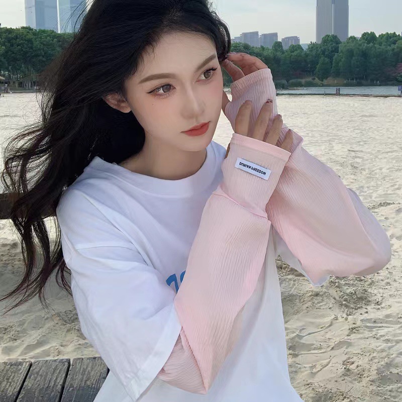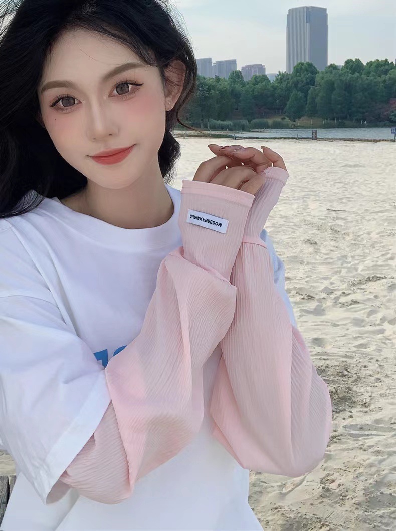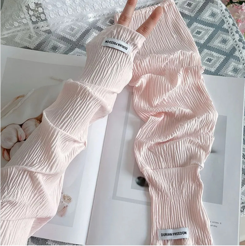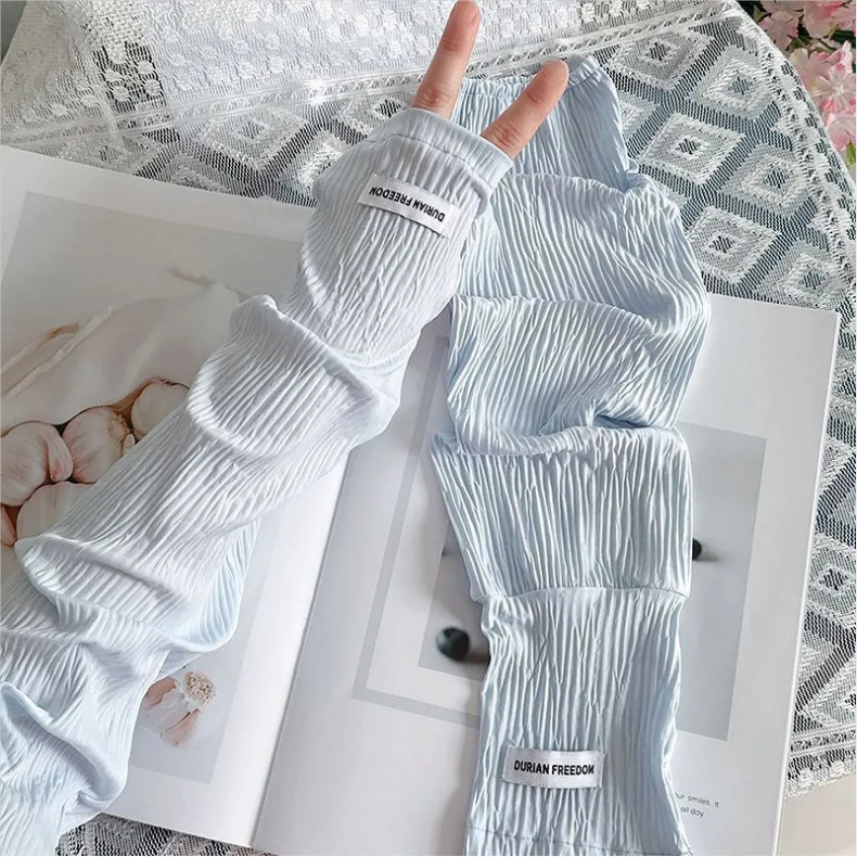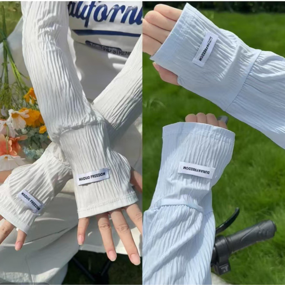 批发代发褶冰丝防晒袖套宽松大码开车防紫外线夏季冰袖骑行遮阳手