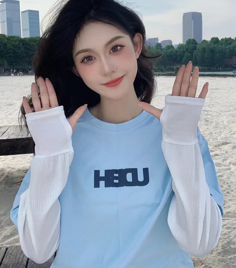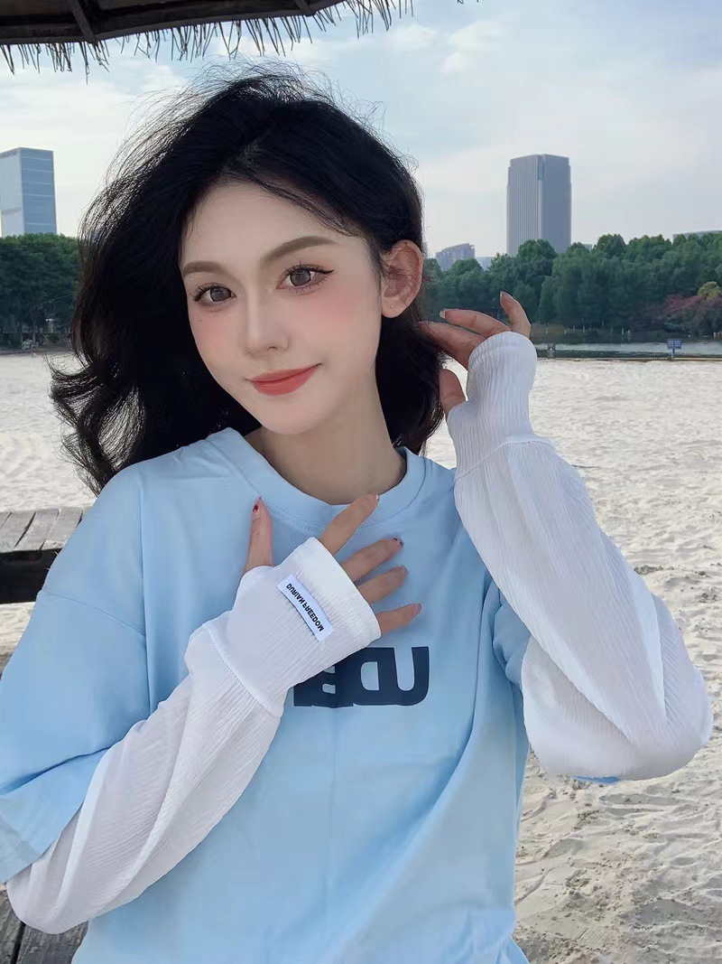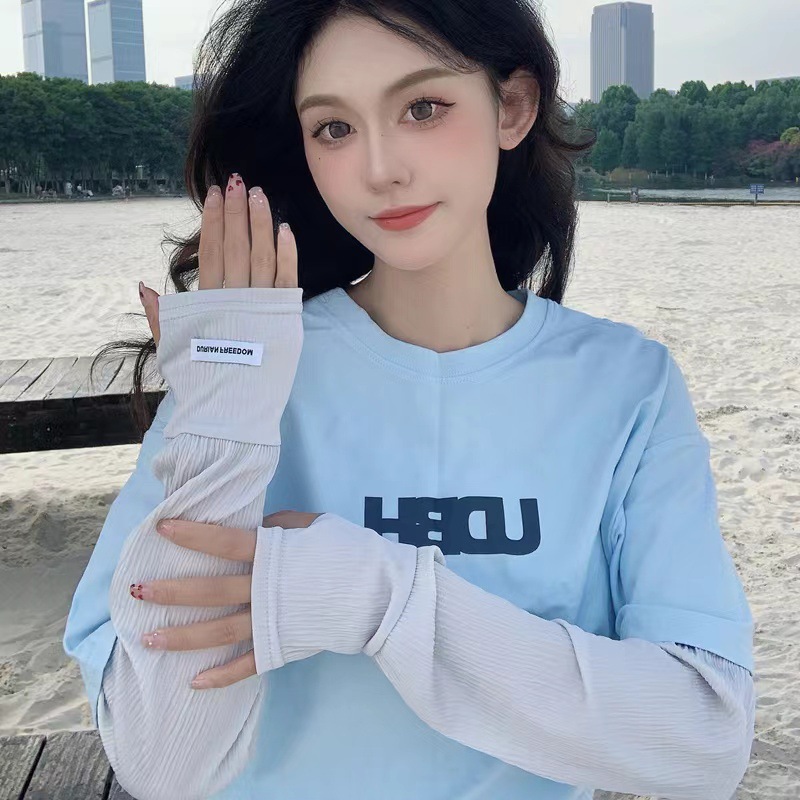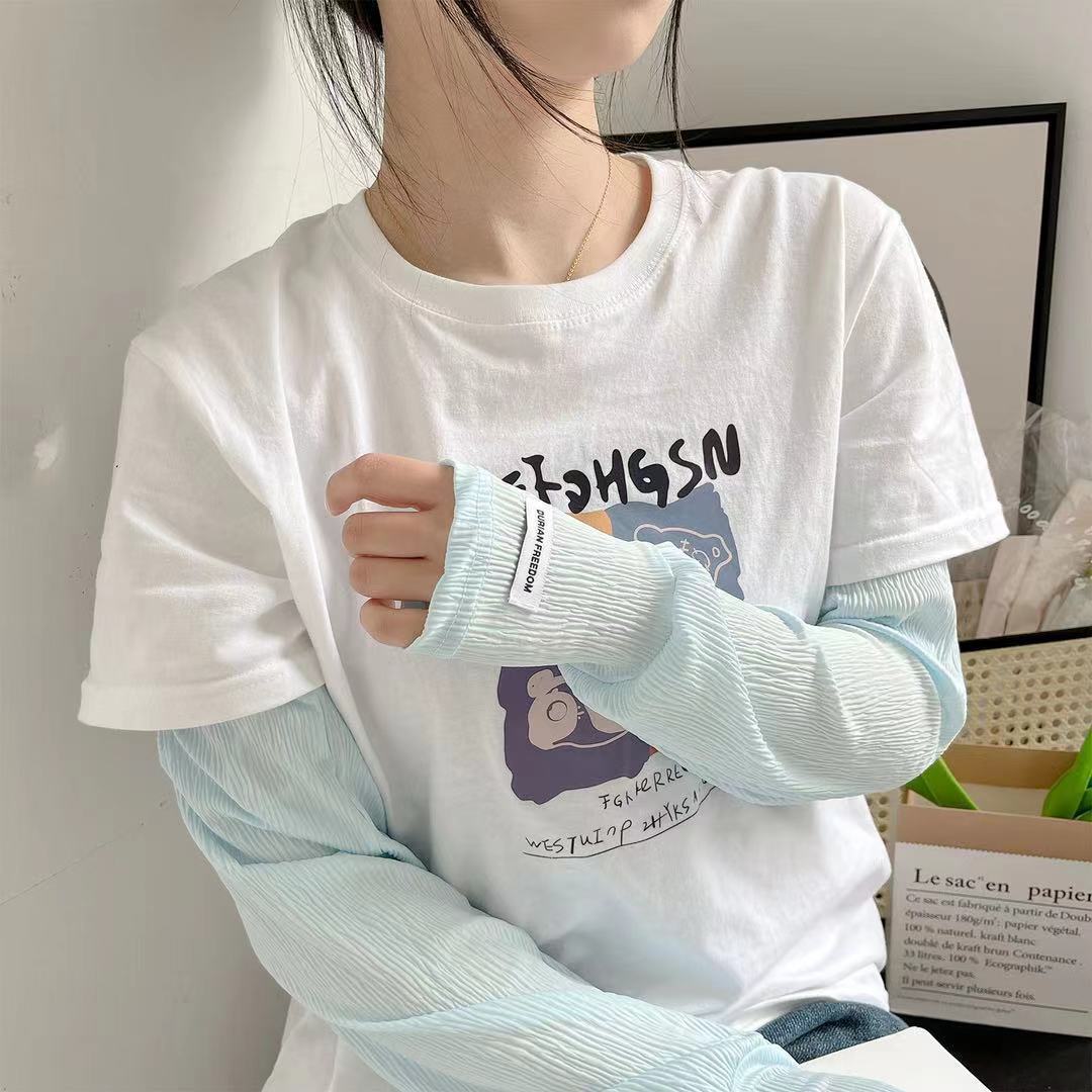 批发代发褶冰丝防晒袖套宽松大码开车防紫外线夏季冰袖骑行遮阳手