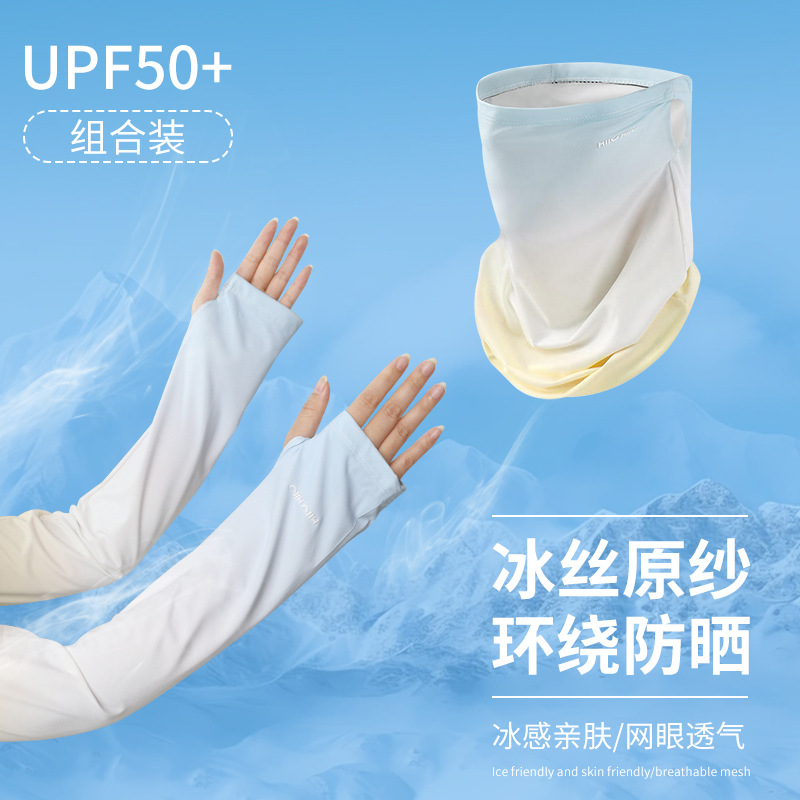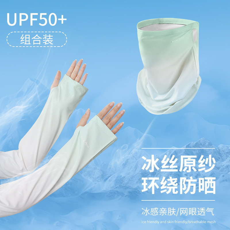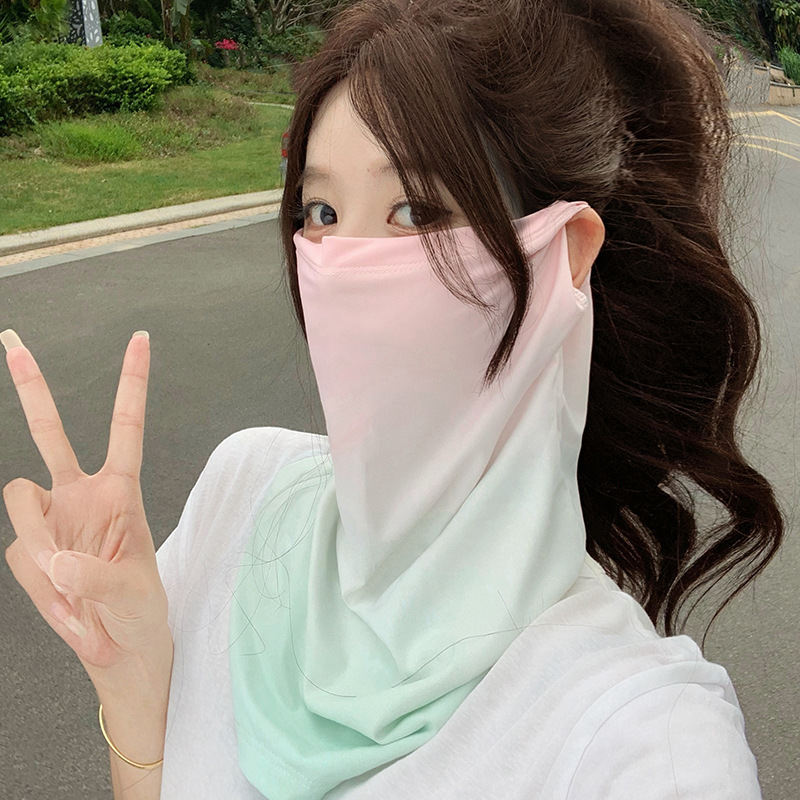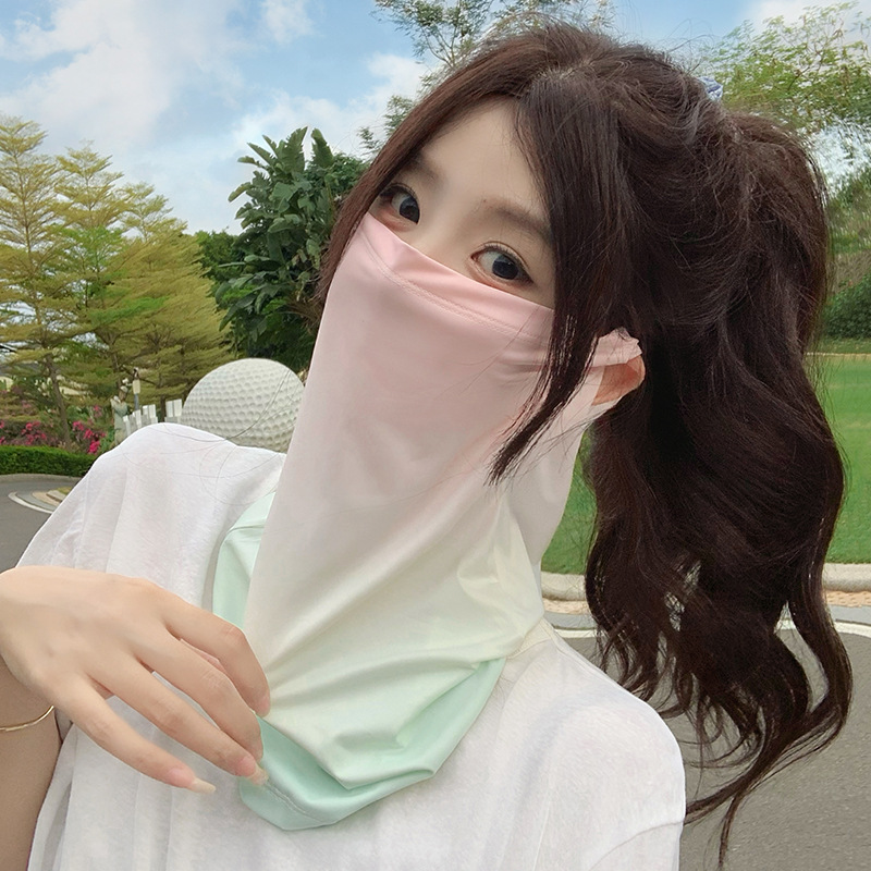 防晒面罩女夏季护颈冰丝袖套防紫外线面纱遮脸开车骑行面罩渐变