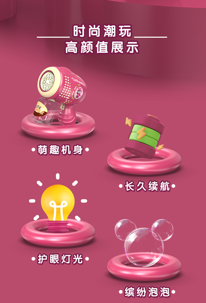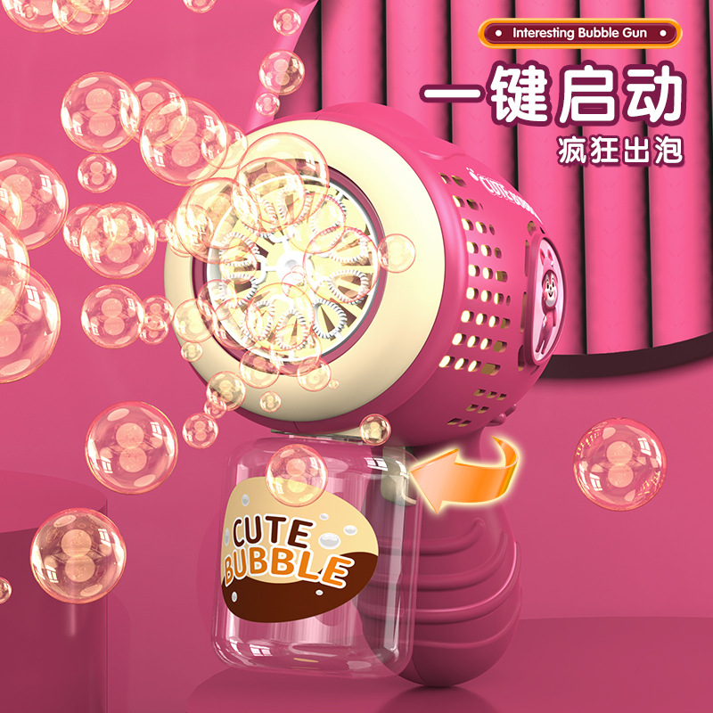 新款全自动草莓熊泡泡机七彩灯光带音乐电动泡泡枪地摊小玩具批发