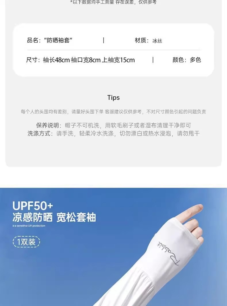 冰丝防晒袖套女夏季防紫外线宽松凉爽薄款套袖骑行开车百搭冰袖