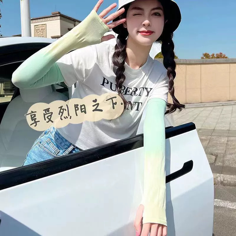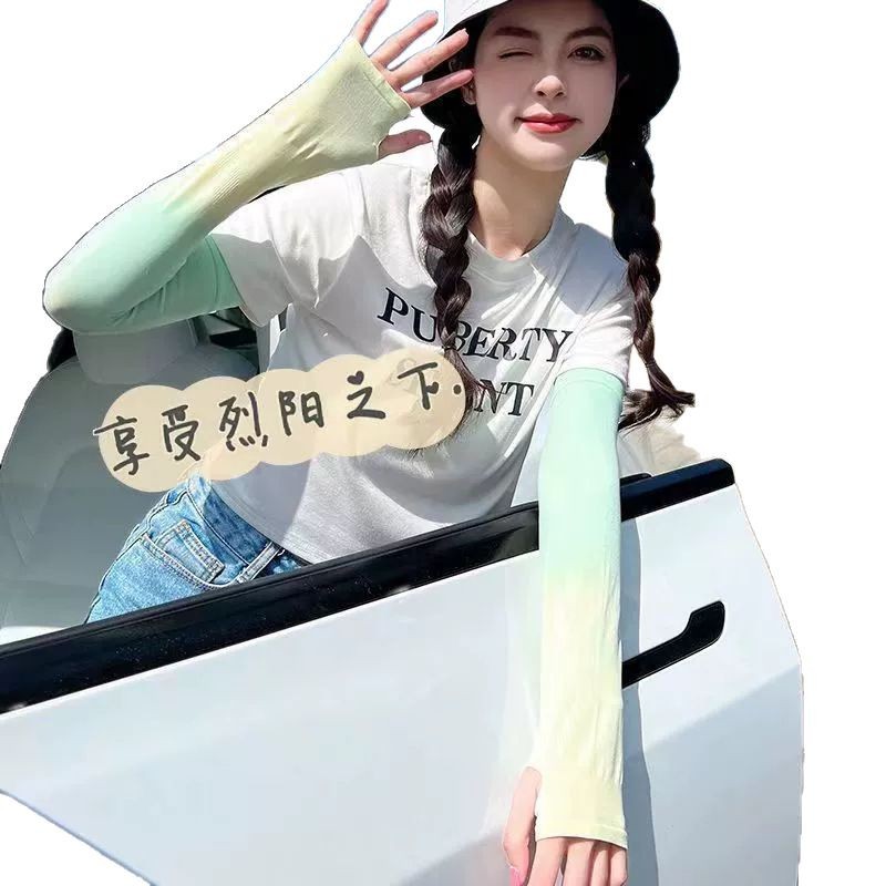 夏季男女防晒冰袖 户外骑行防紫外线护袖 时尚渐变色冰丝袖套批发