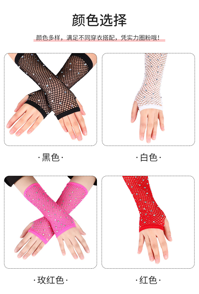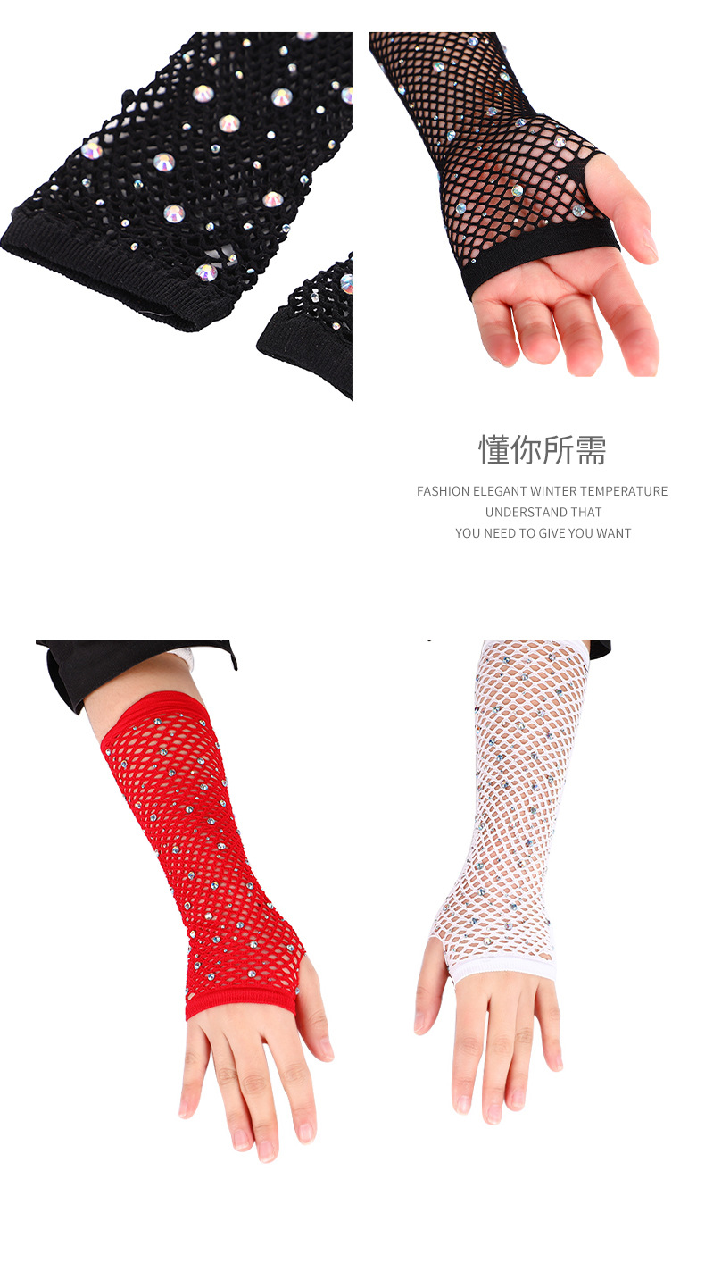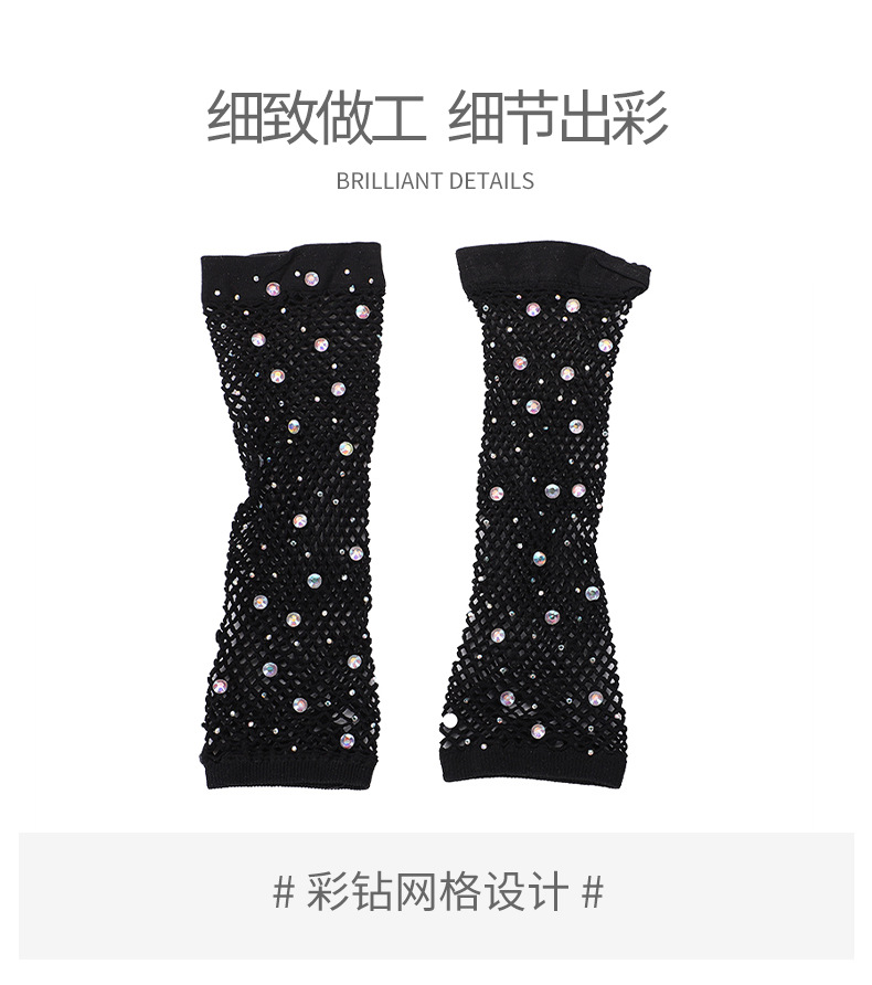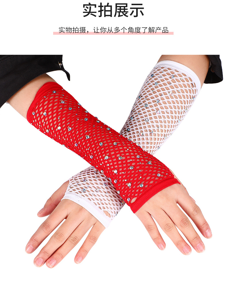 长款跨境镶钻漏指手套夏季防晒半指派对网眼袖套性感镂空半指手套