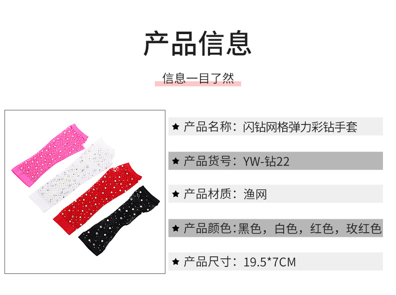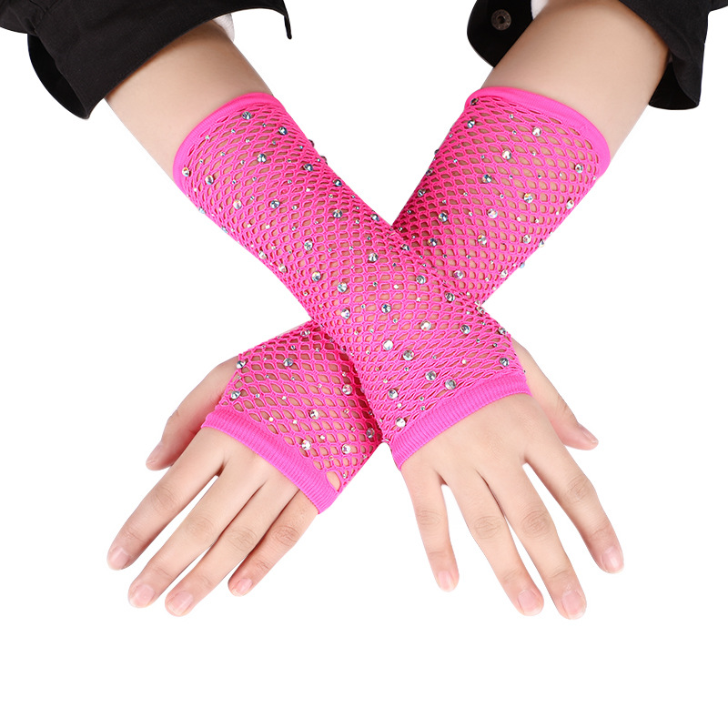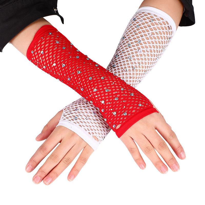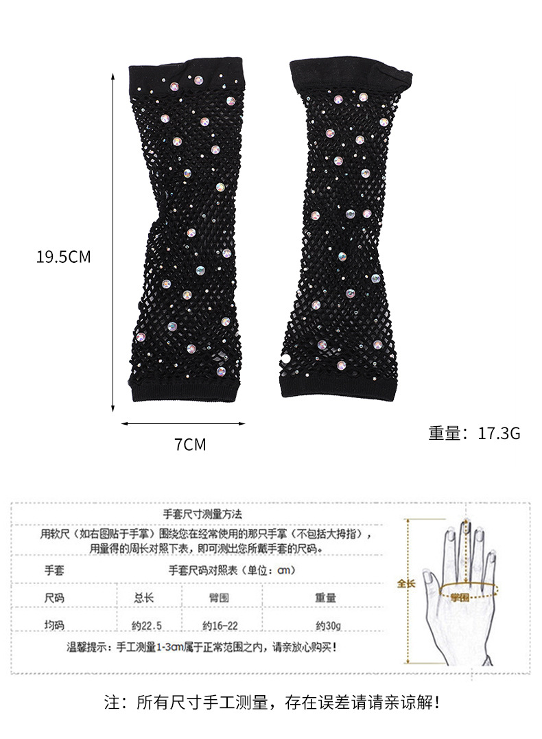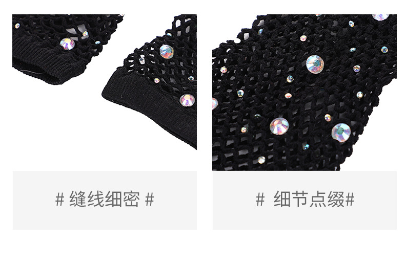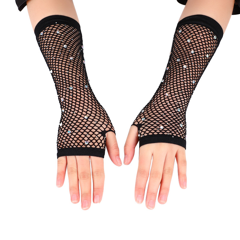 长款跨境镶钻漏指手套夏季防晒半指派对网眼袖套性感镂空半指手套