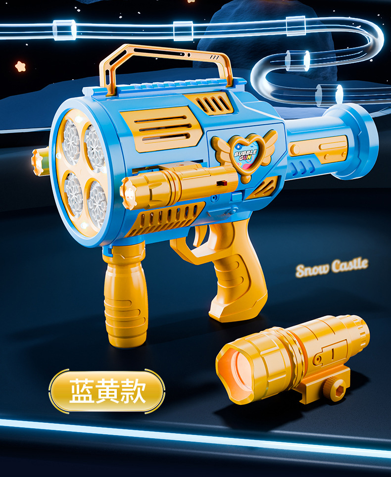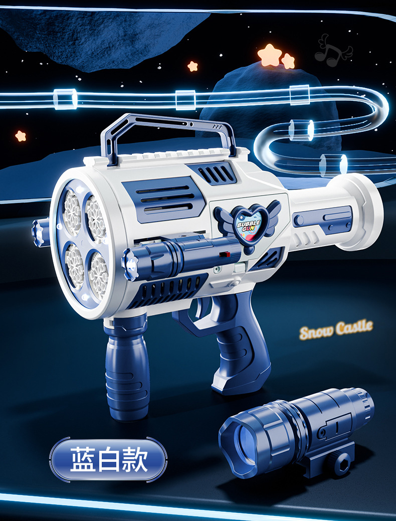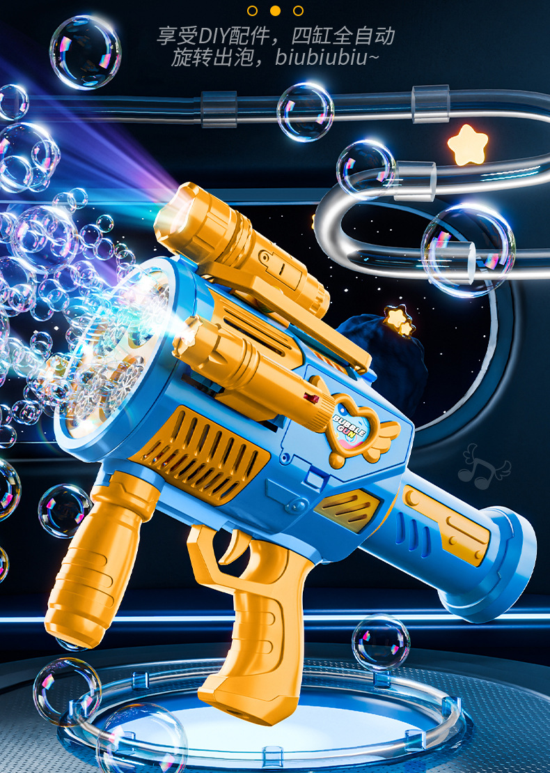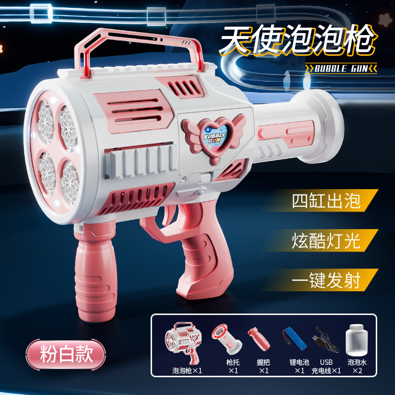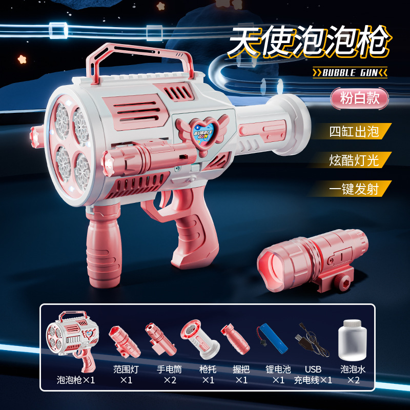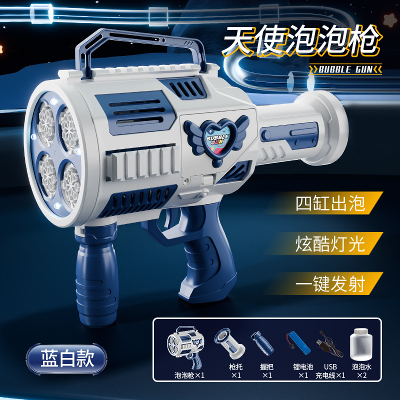 跨境儿童四缸泡泡机手持不漏加特林发光泡泡枪电动充电款泡泡机