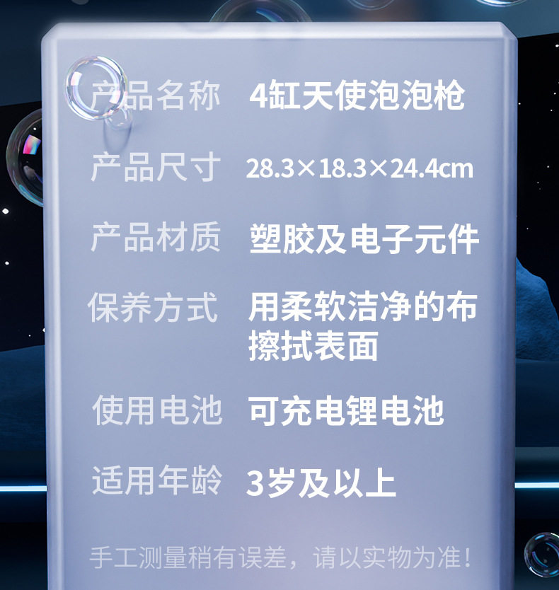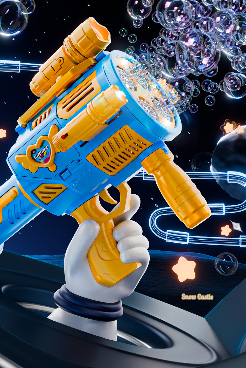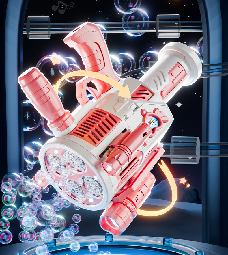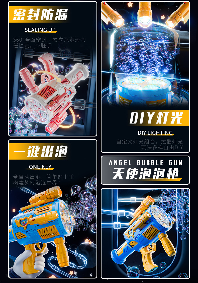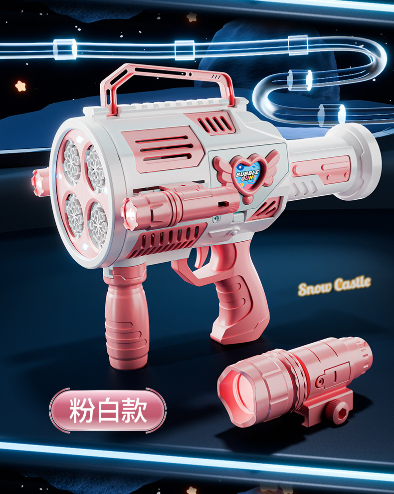 跨境儿童四缸泡泡机手持不漏加特林发光泡泡枪电动充电款泡泡机
