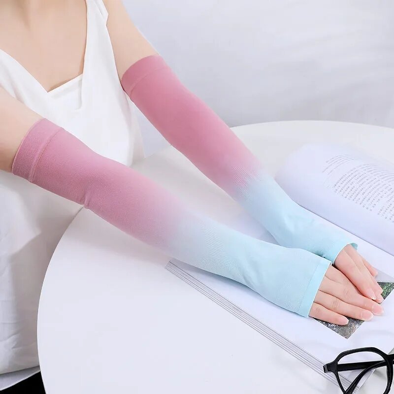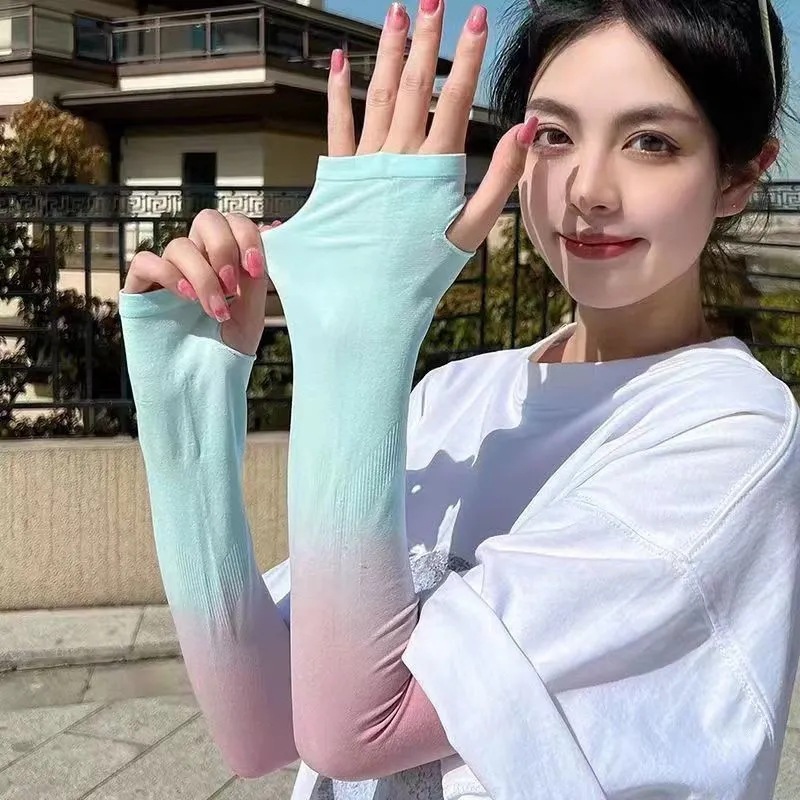2025新款渐变色冰袖冰丝防晒袖套女夏季薄款防紫外线遮阳防护