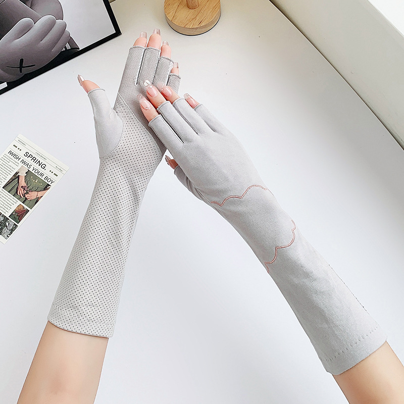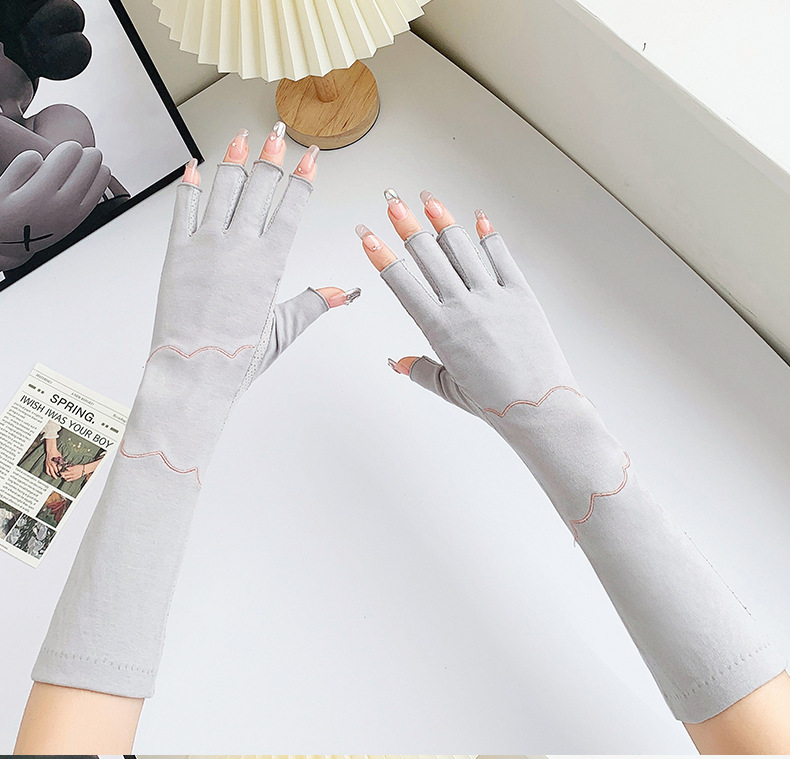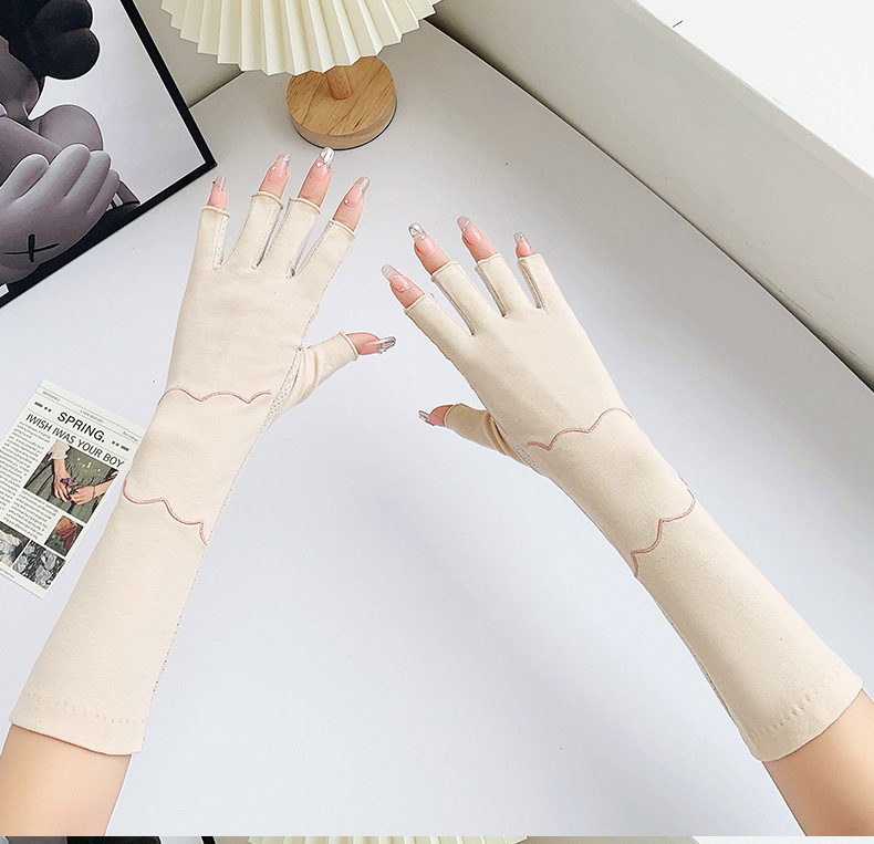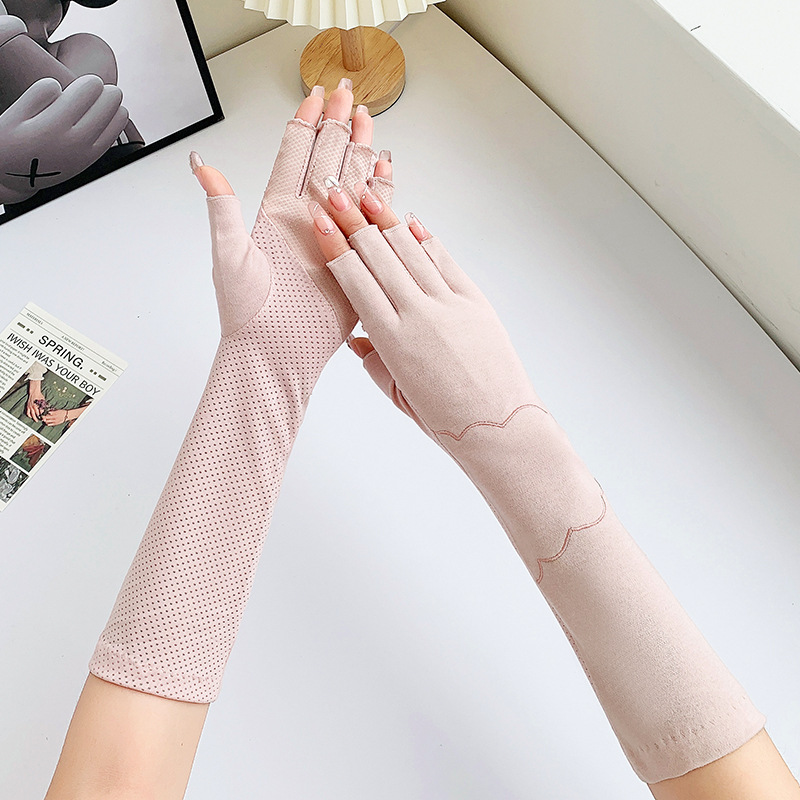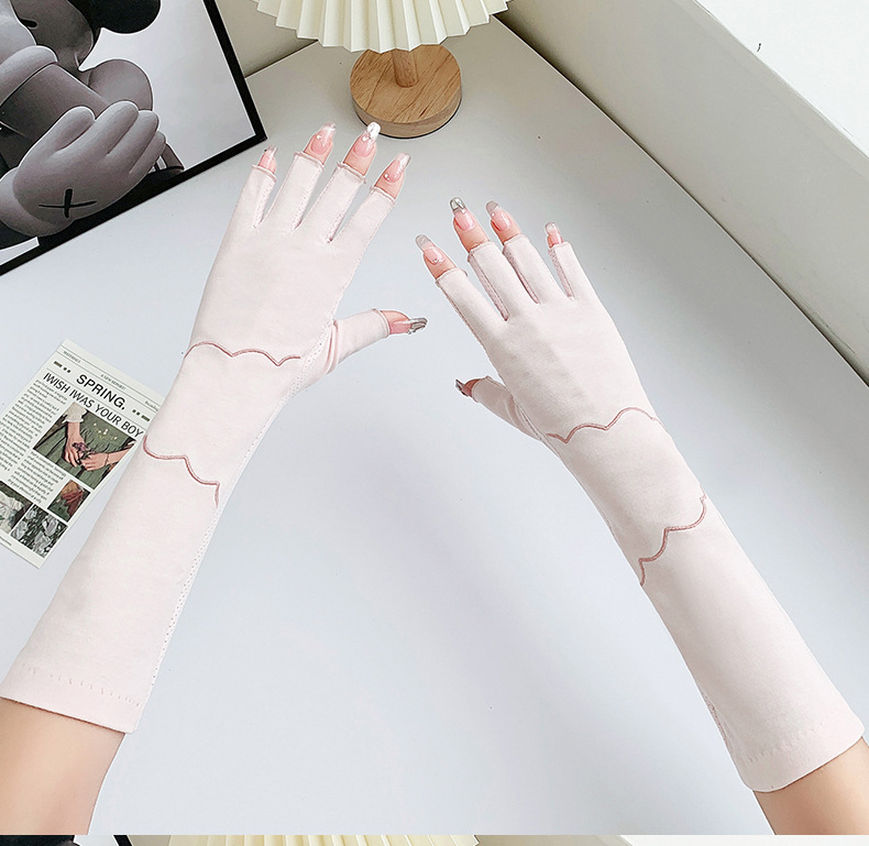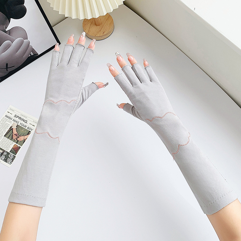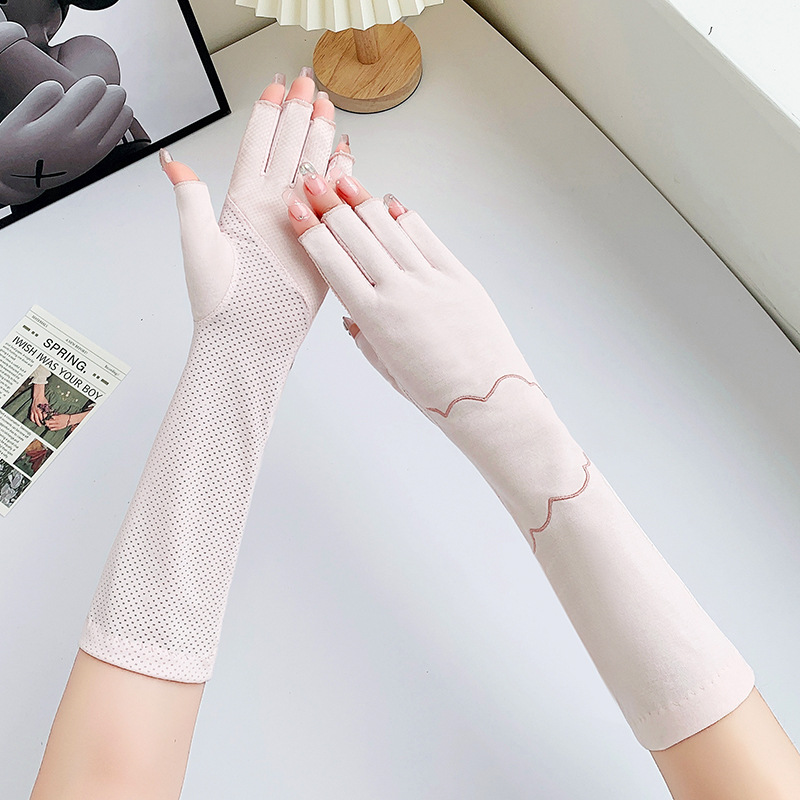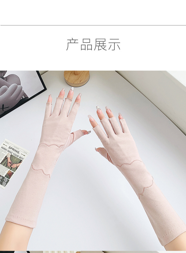 加长半指防晒手套女薄棉防滑采茶护手臂袖套美甲防紫外线半指手套