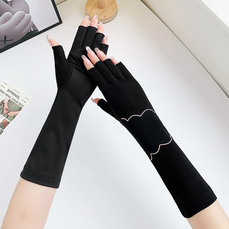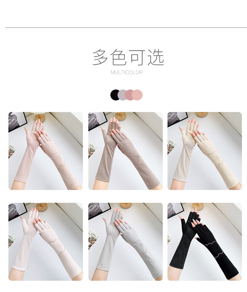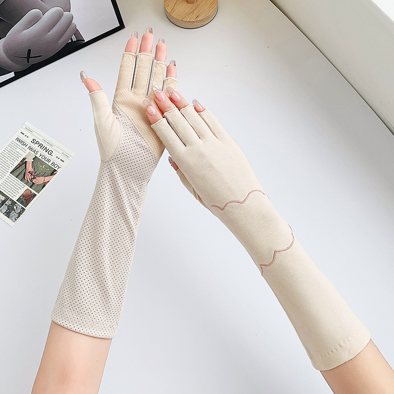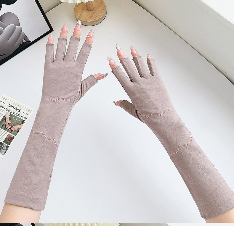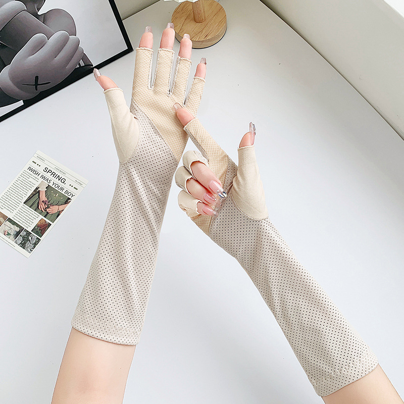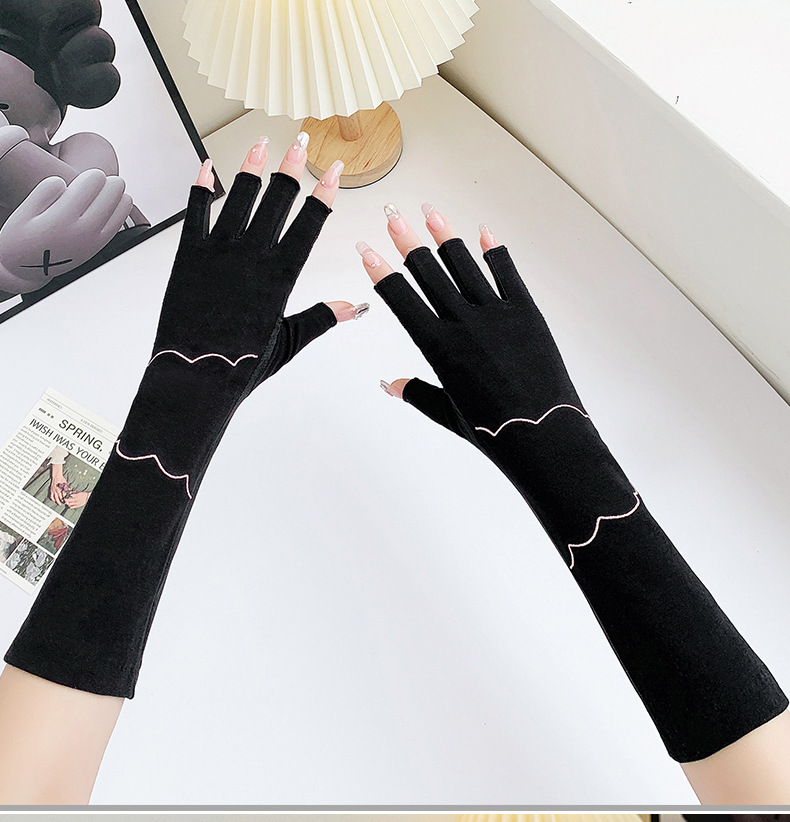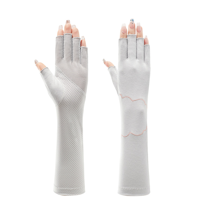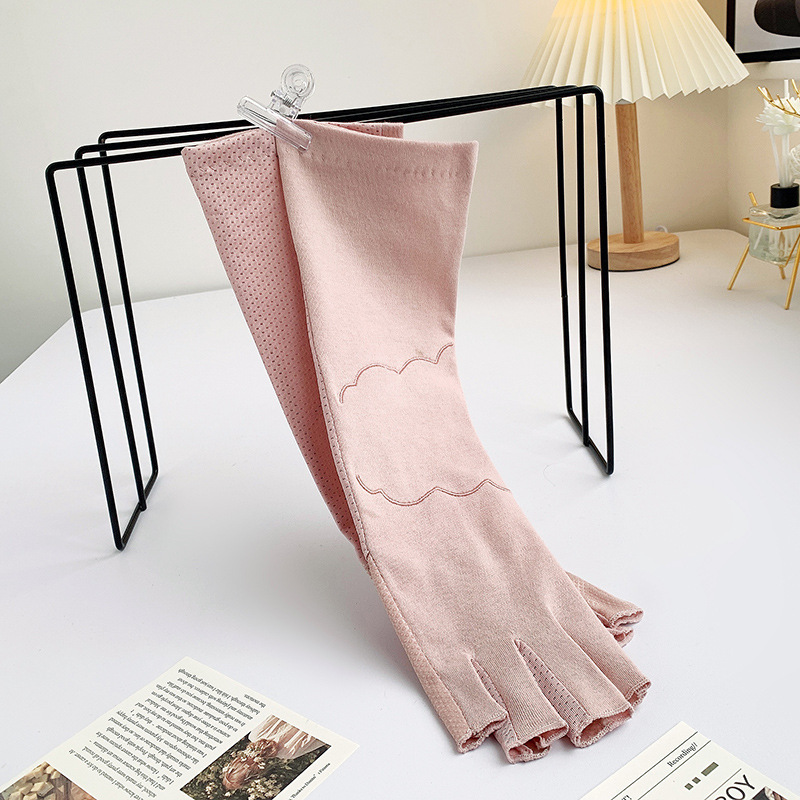 加长半指防晒手套女薄棉防滑采茶护手臂袖套美甲防紫外线半指手套