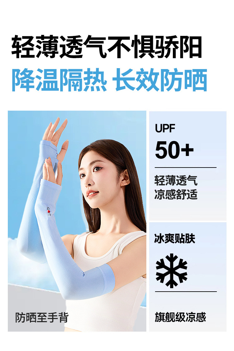 UPF50+防晒冰丝袖套女户外薄款防紫外线手袖运动弹力锦纶冰袖