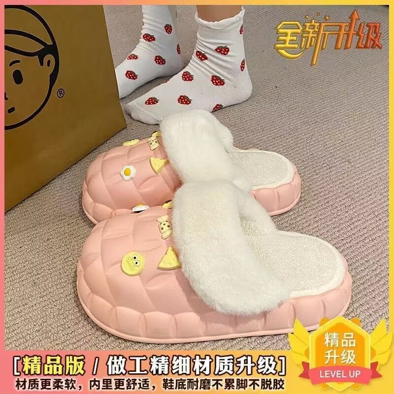 棉拖鞋女新款可拆卸冬季外穿家居室内毛绒棉拖鞋防水保暖毛毛拖鞋