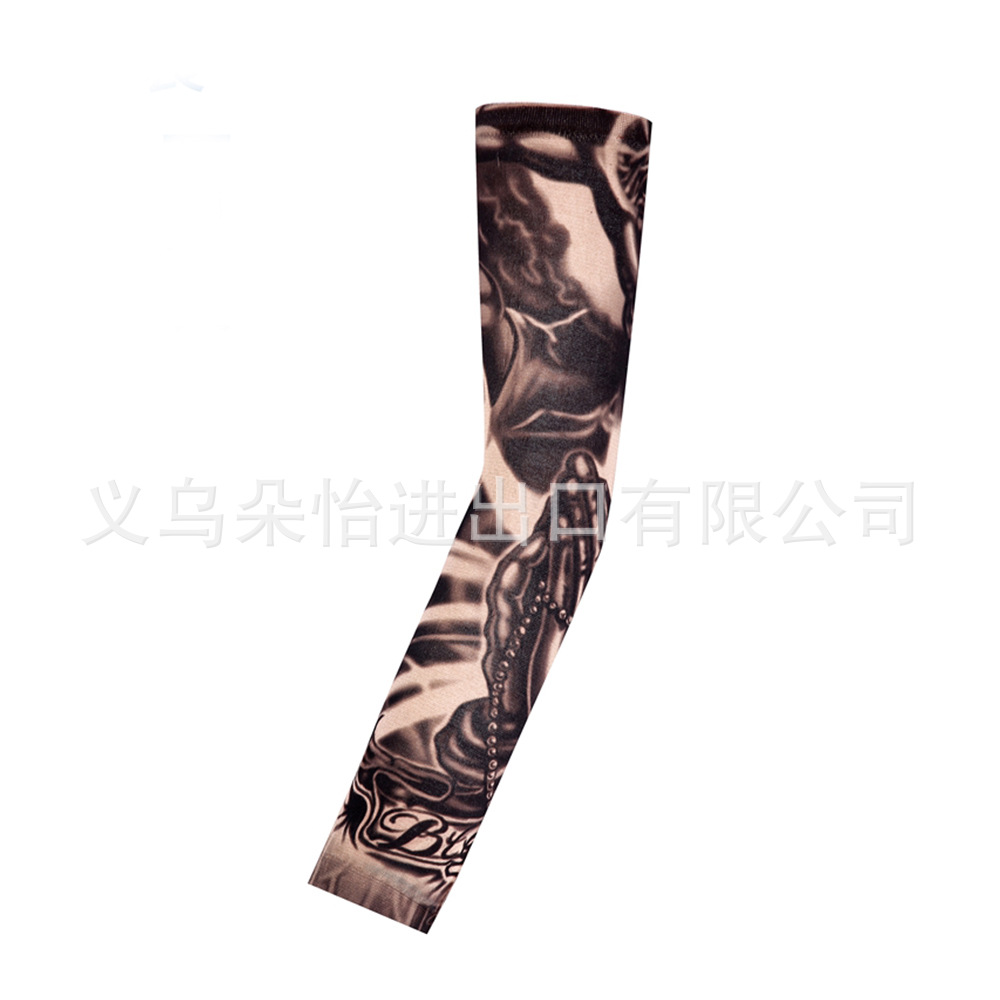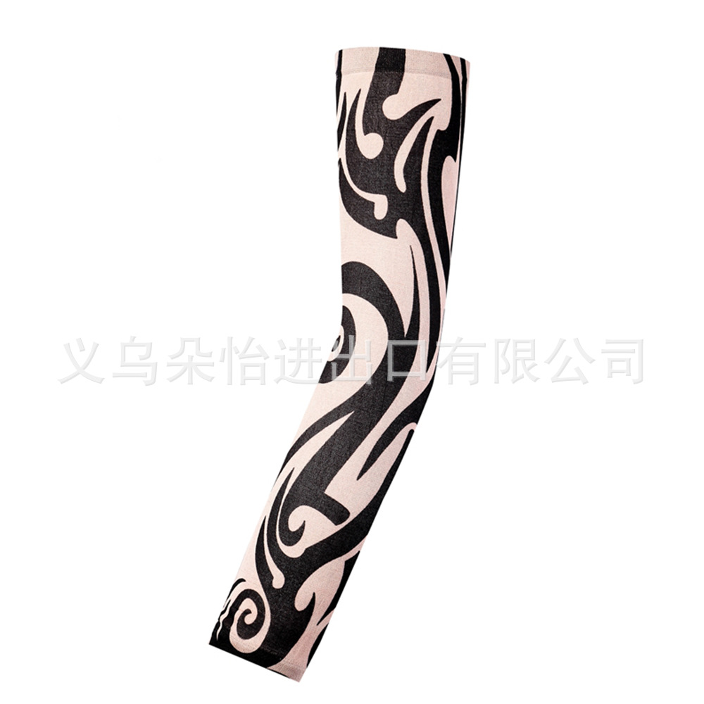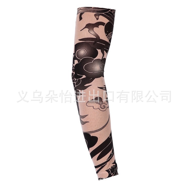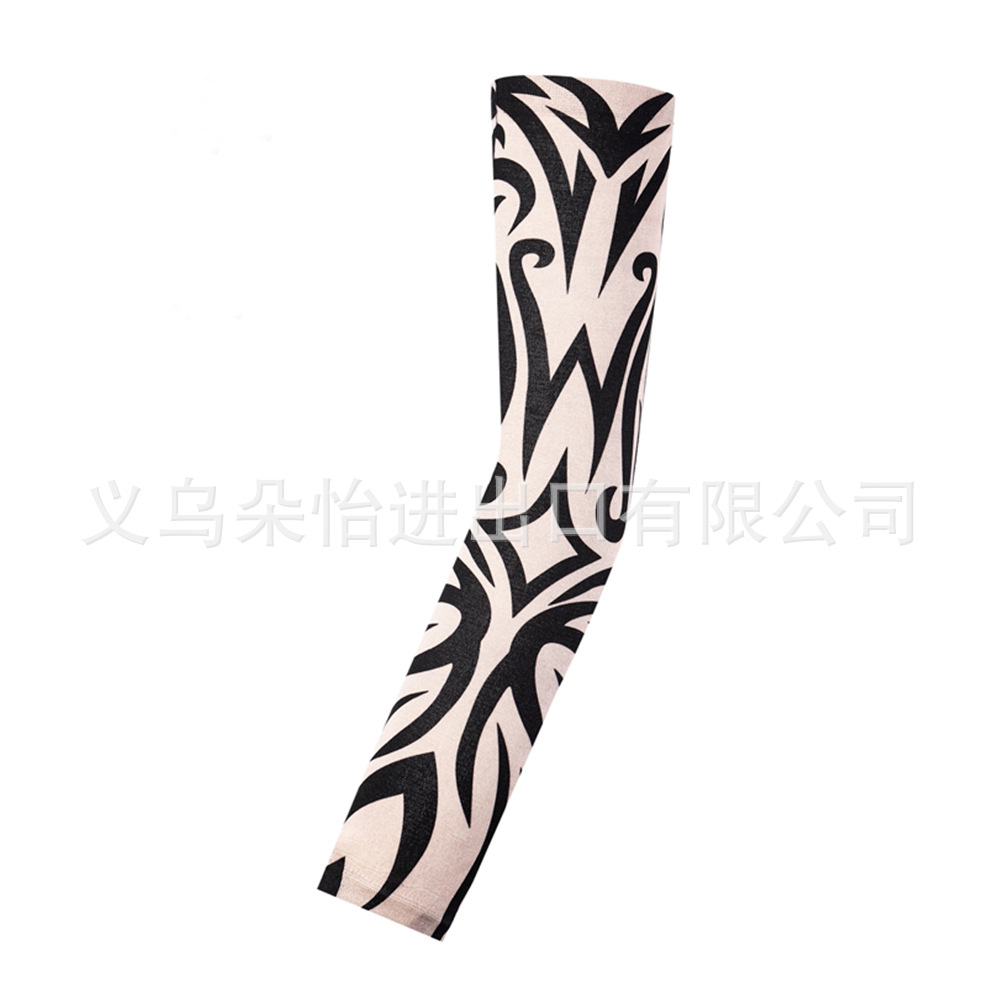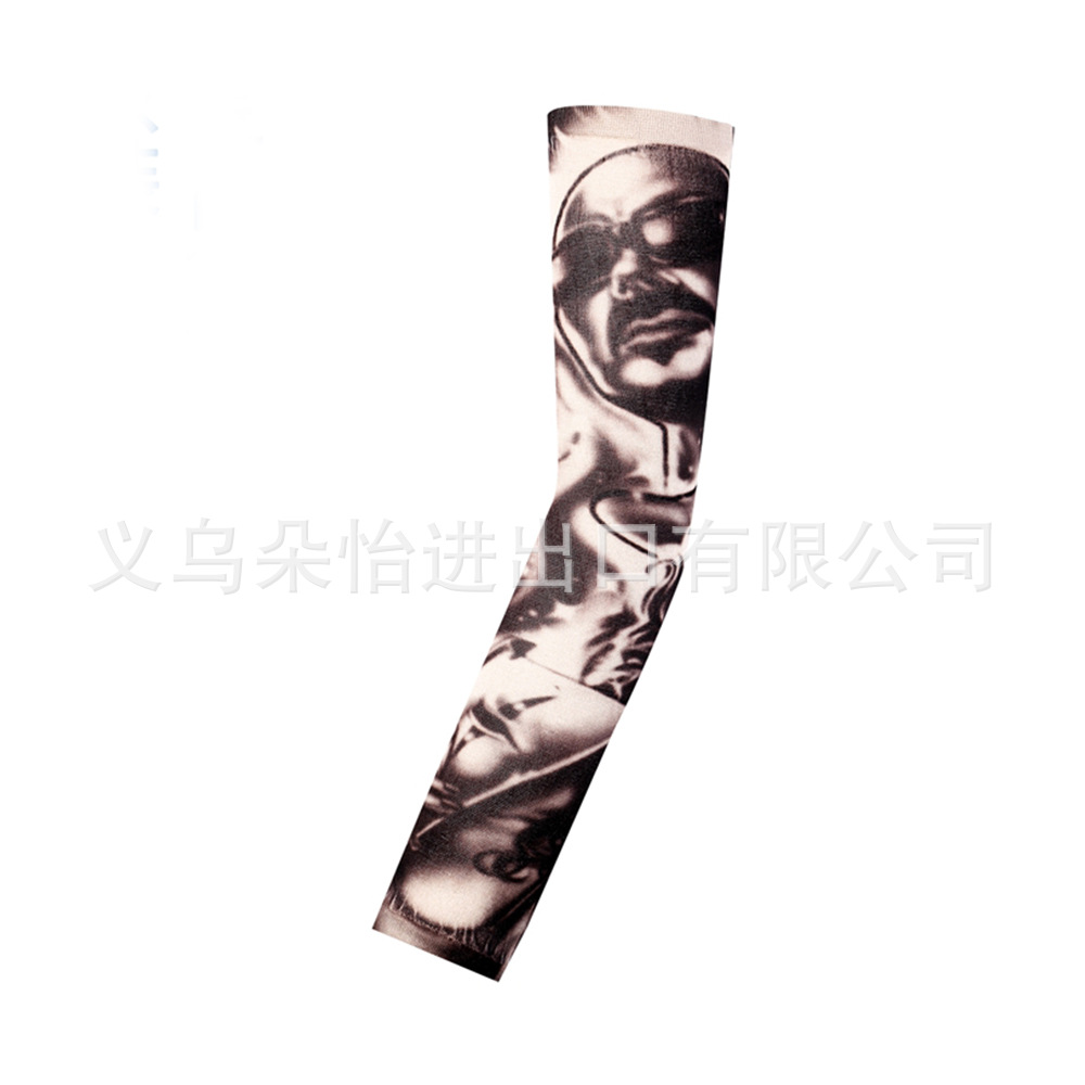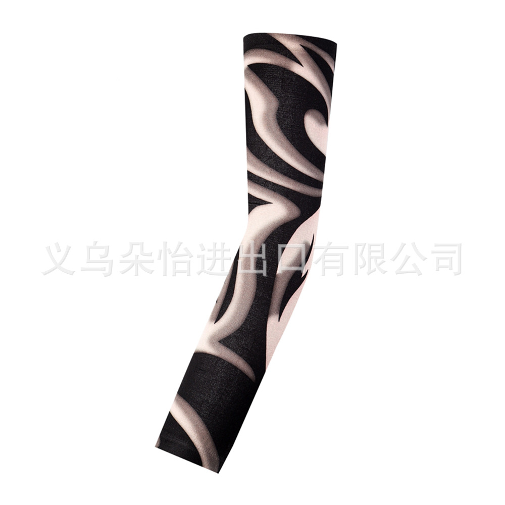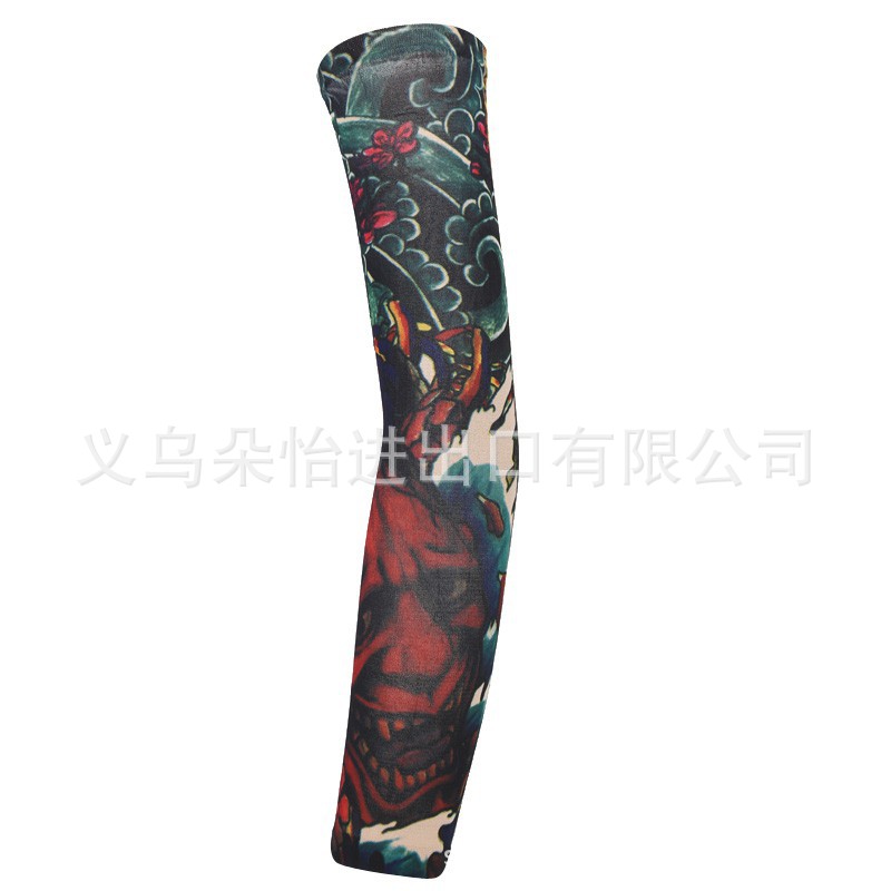 跨境单只纹身袖套夏季运动户外透气吸汗冰丝防晒有缝花臂刺青冰袖